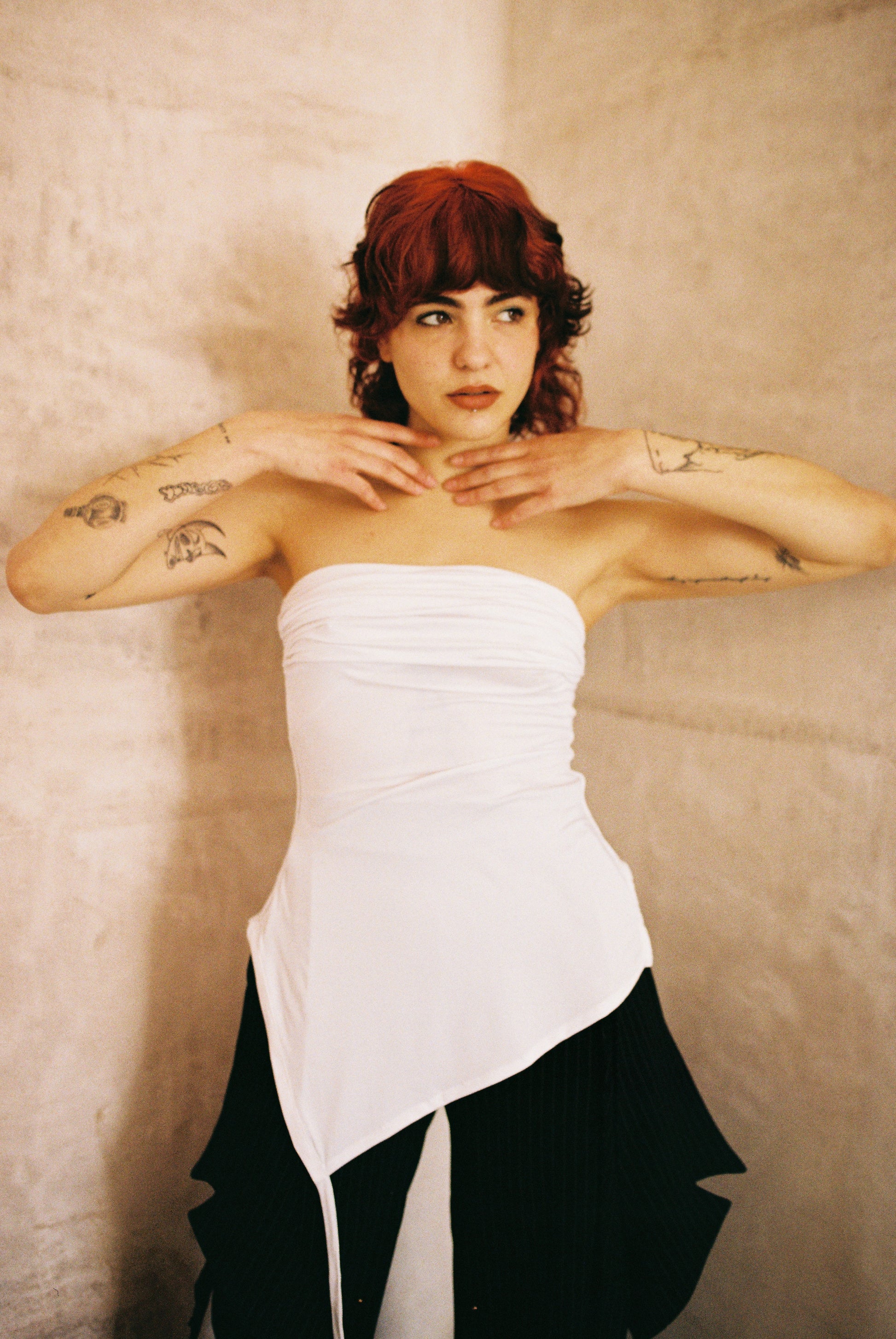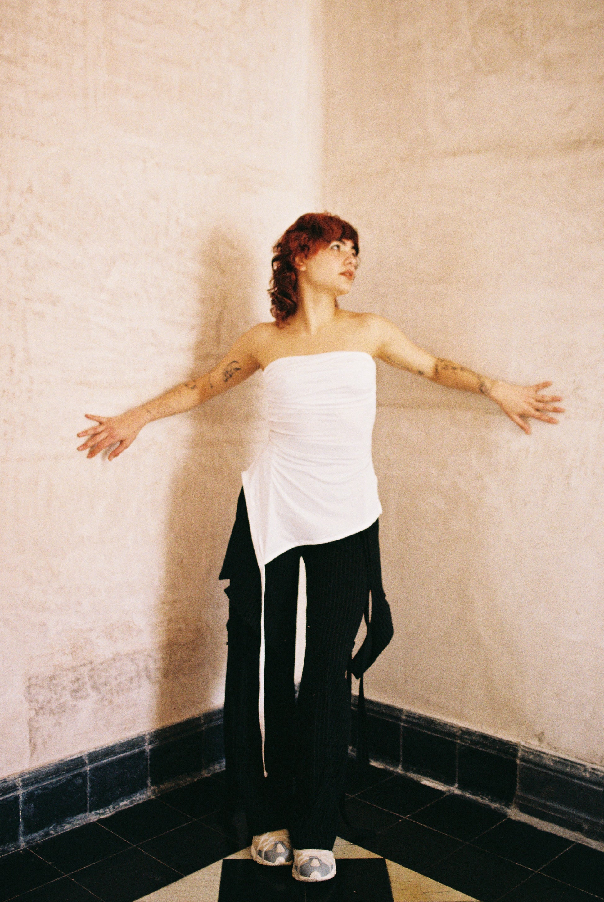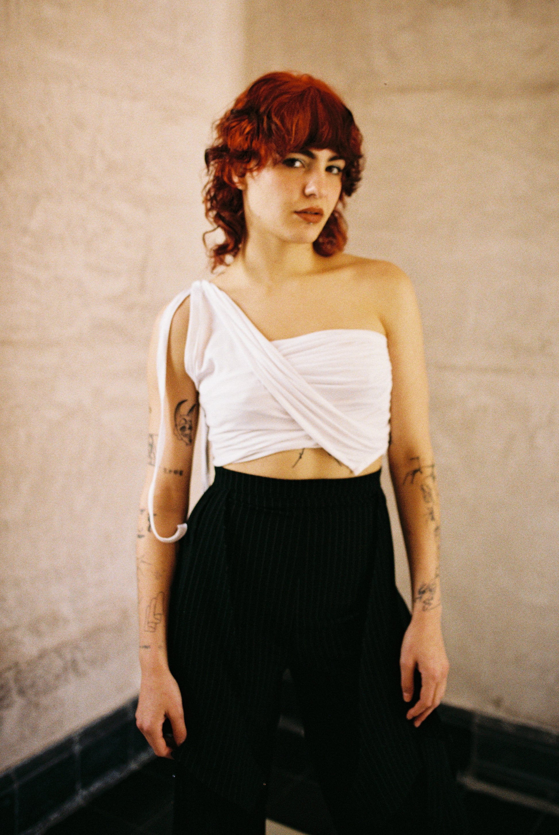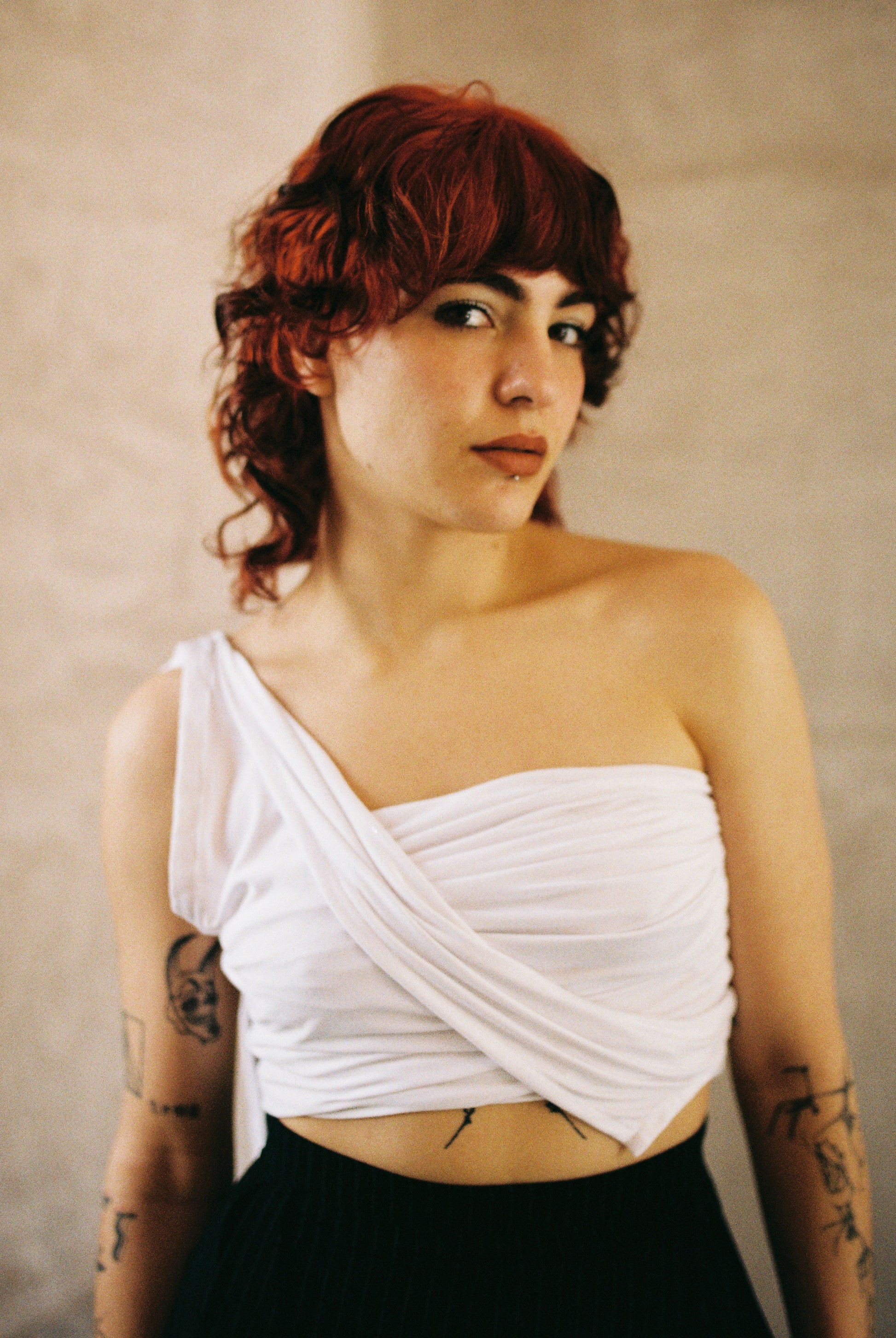 Versatile top that can be used as a long asymmetrical blouse or as a draped croptop, tying the lower straps on the shoulder. It is made of a very fine and soft cotton/spandex blend fabric. Made in Mexico in an ethical and sustainable way.