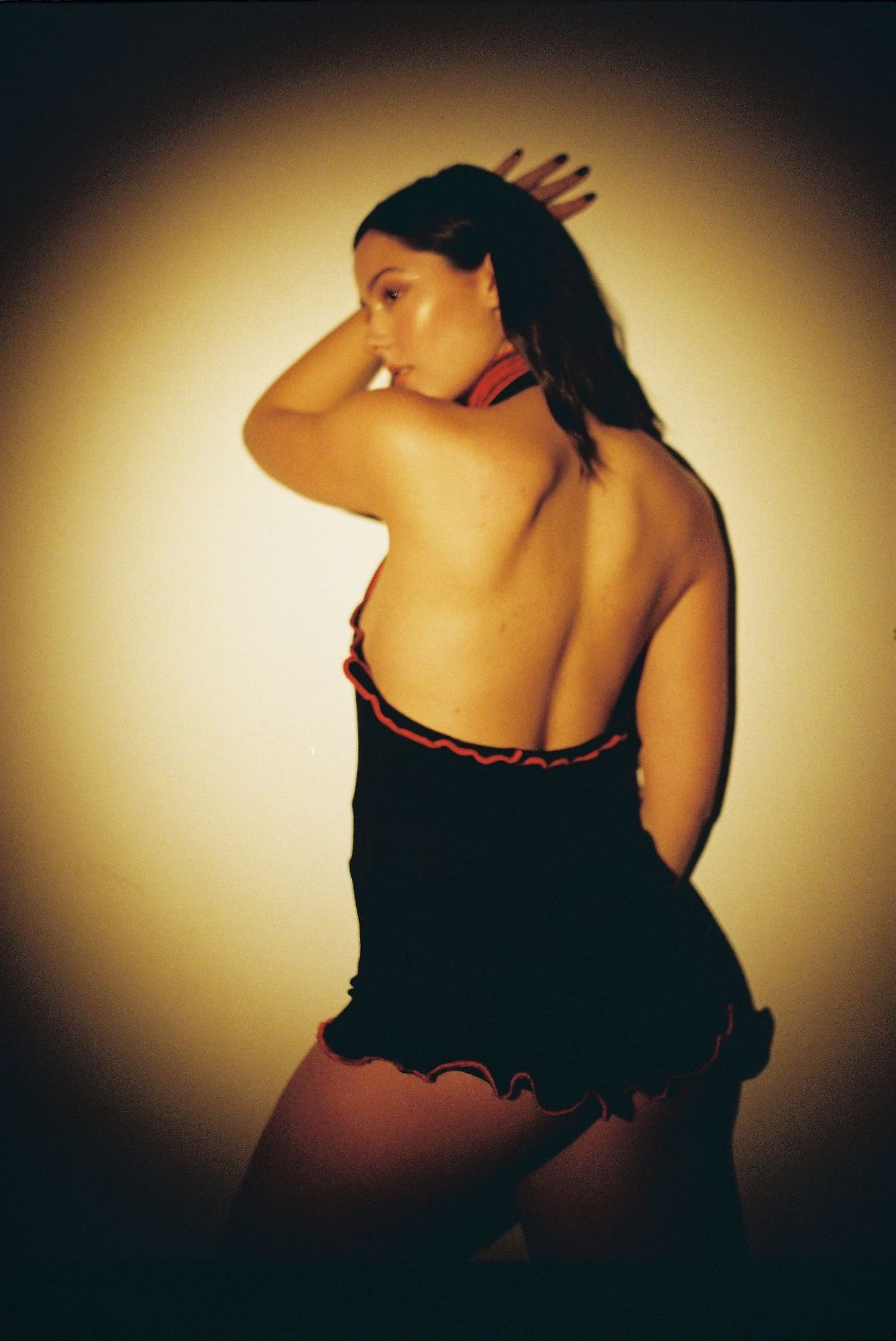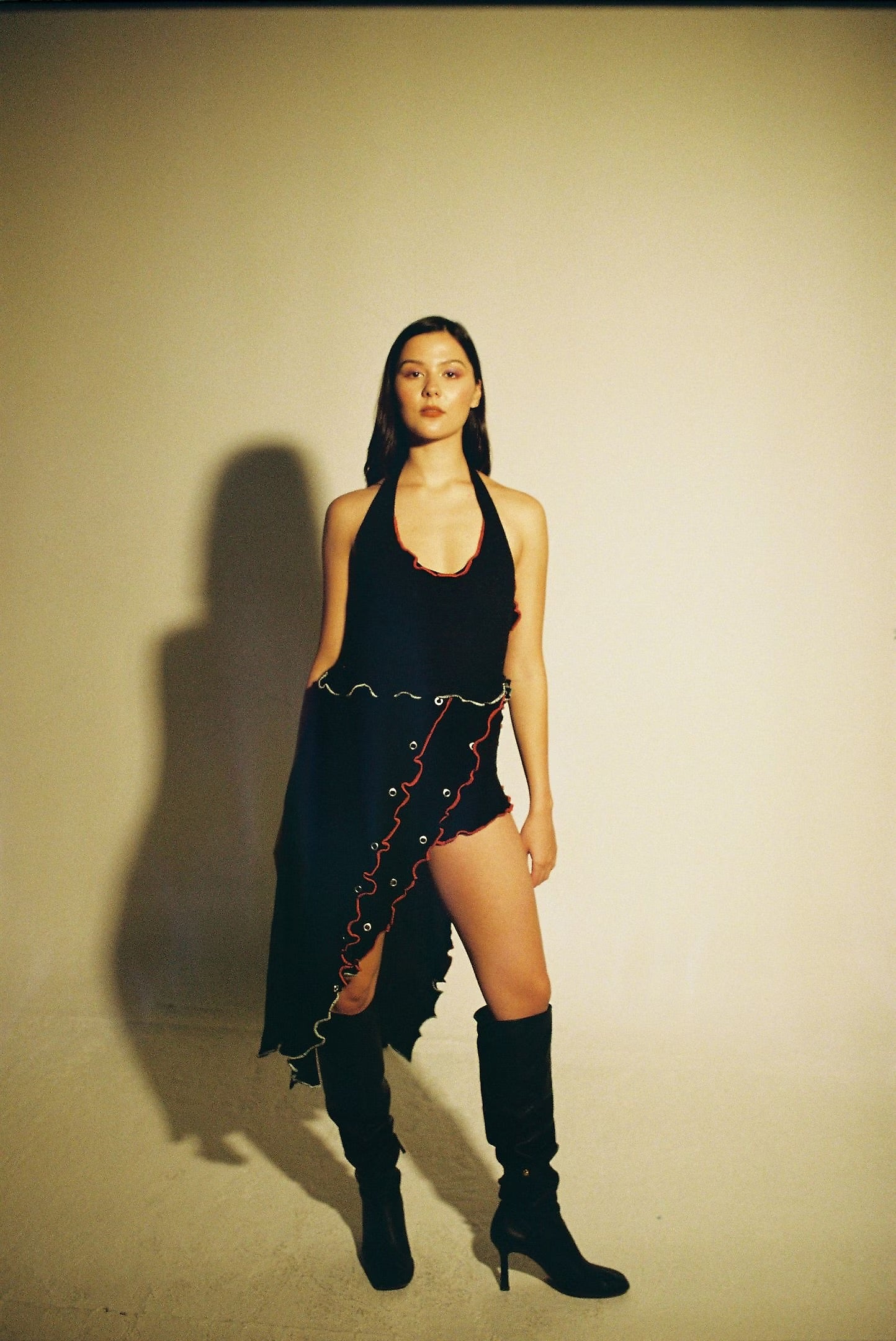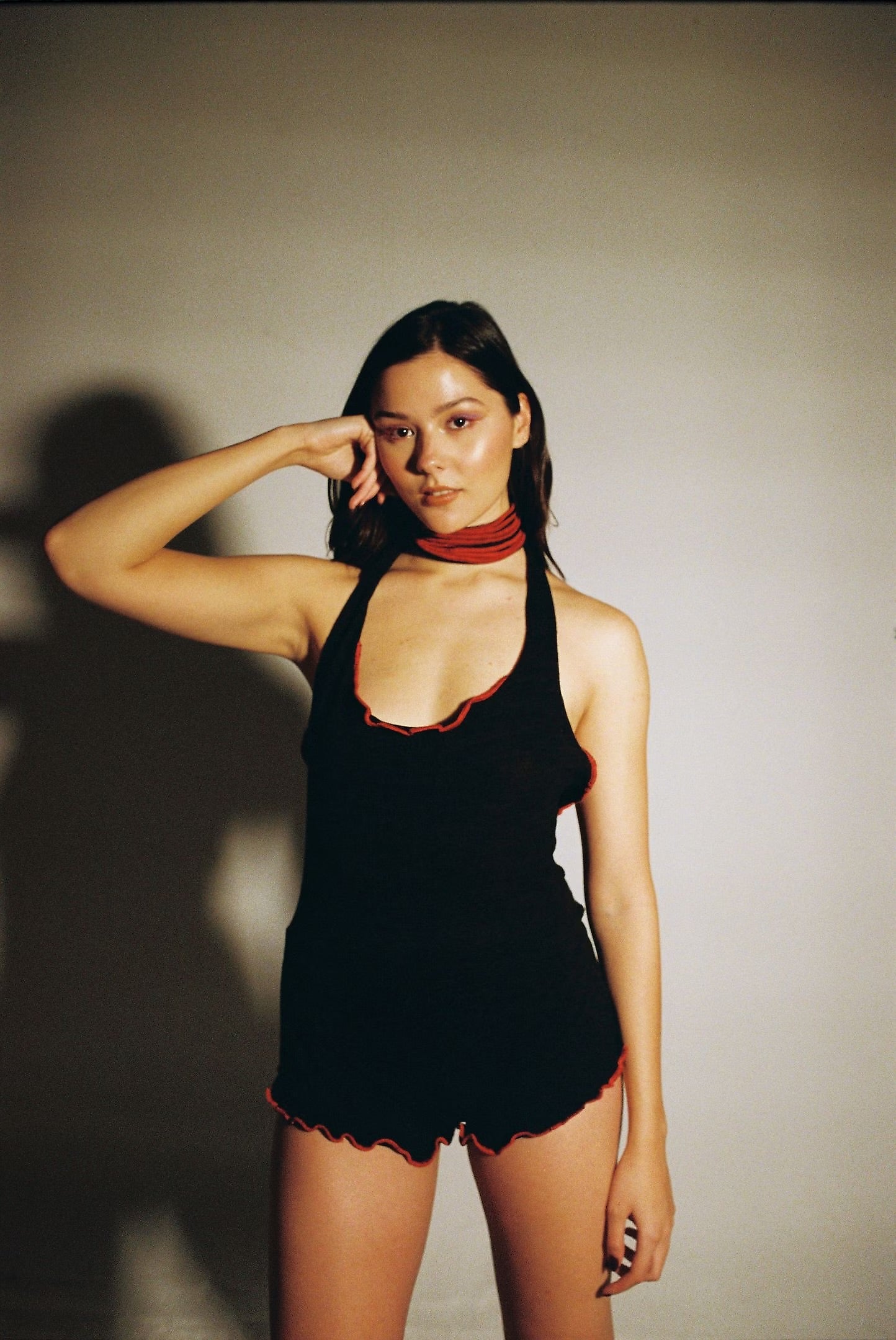 This set is composed of a jumpsuit, it can also be worn as shorts, letting the upper piece fall down.