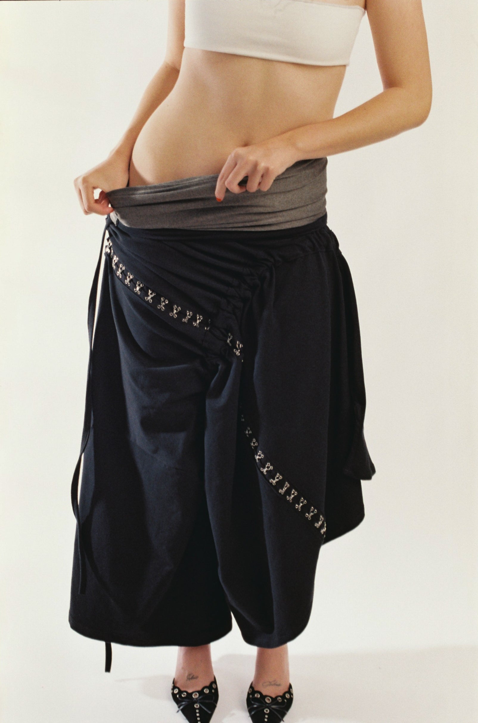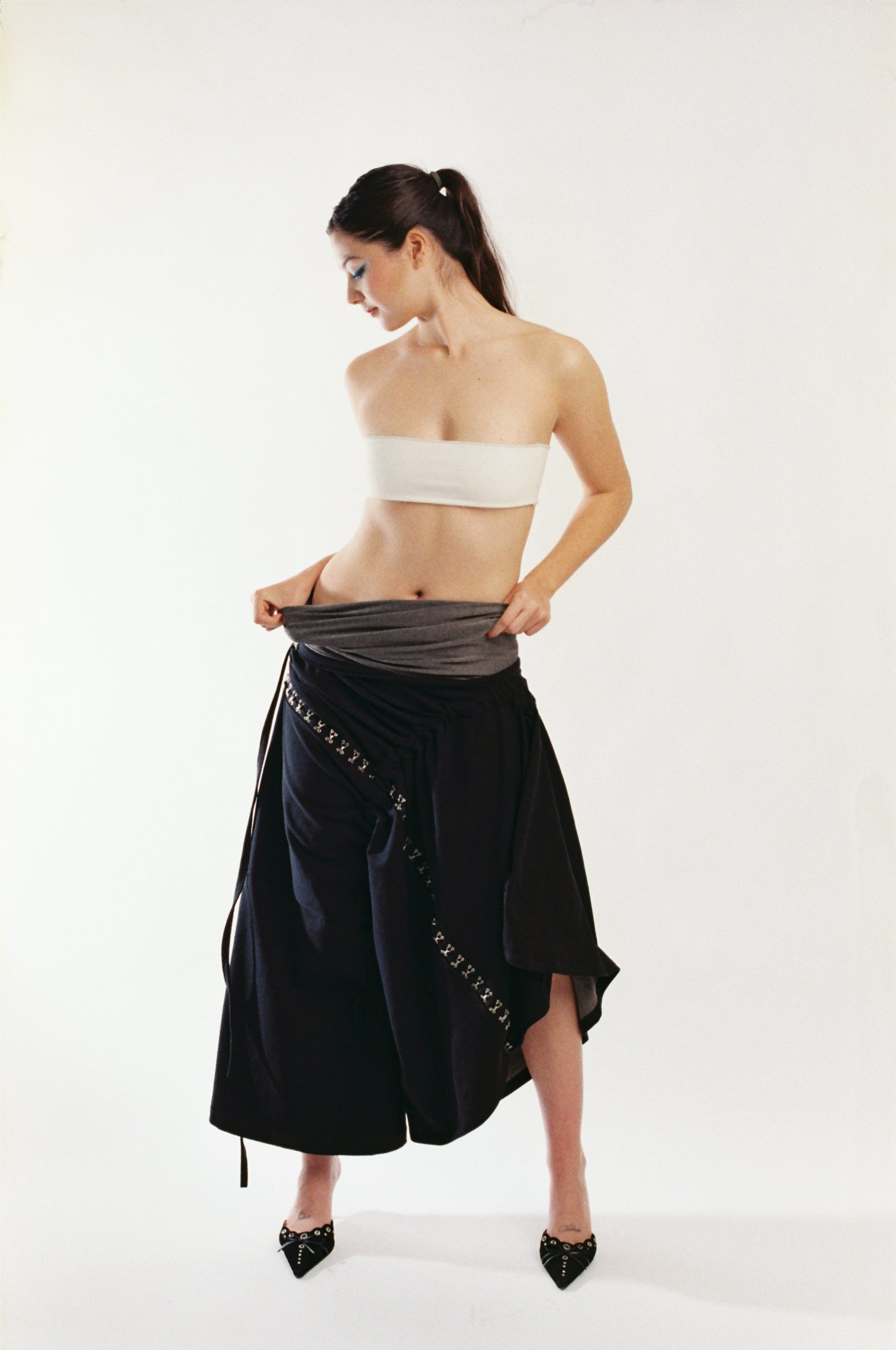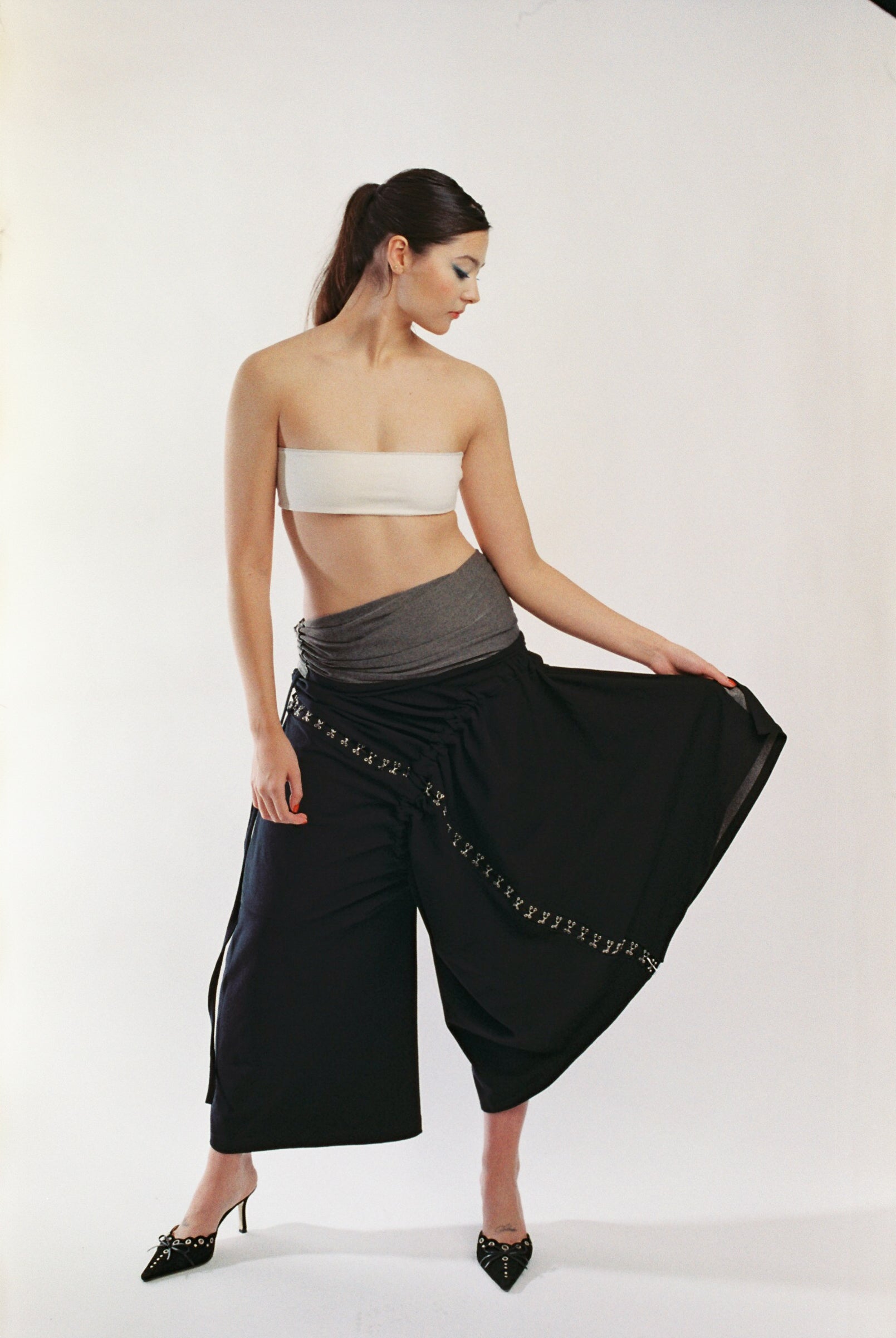This piece can be worn as a pant, a jumpsuit and a kimono!