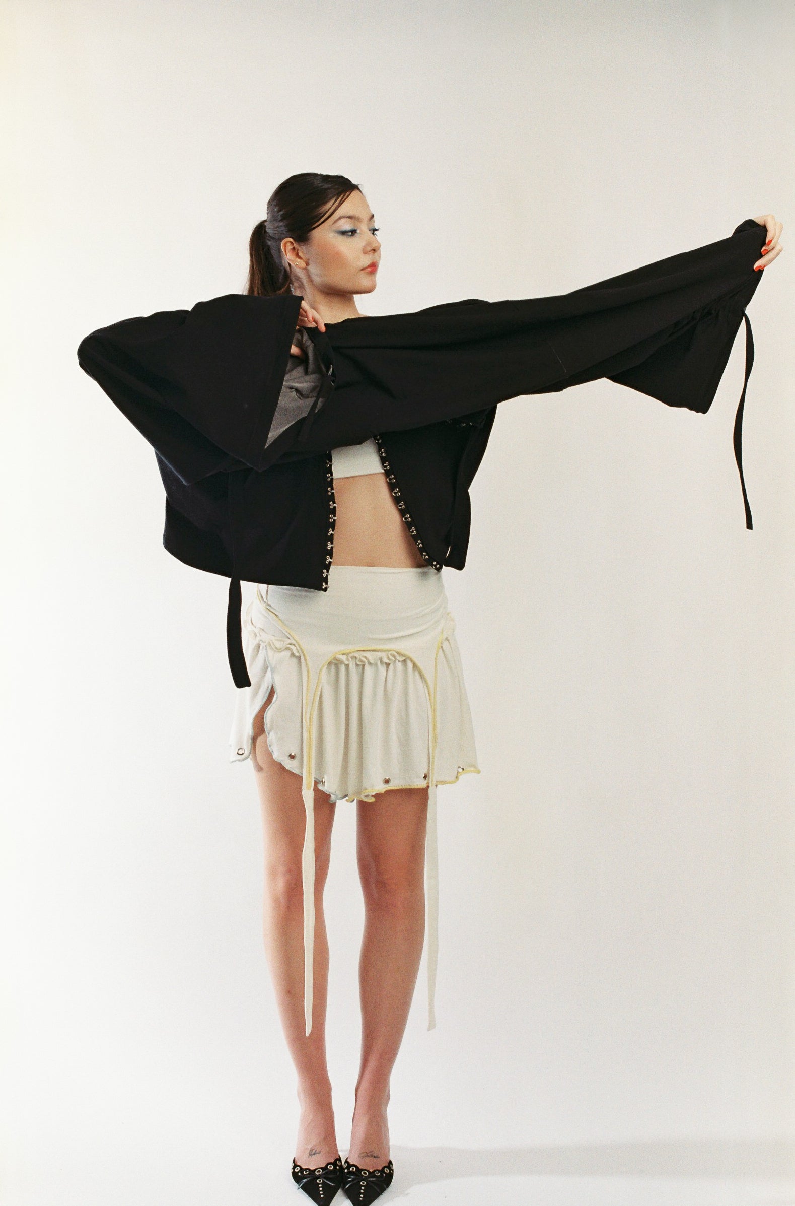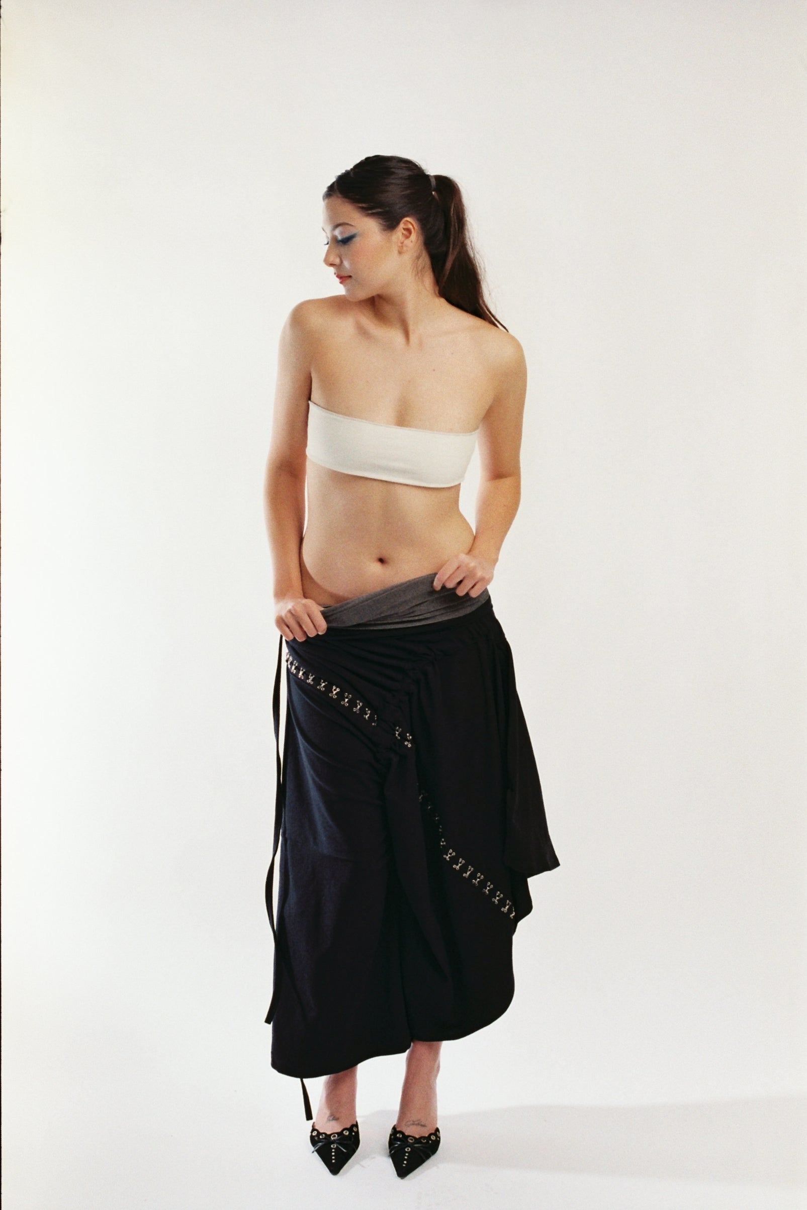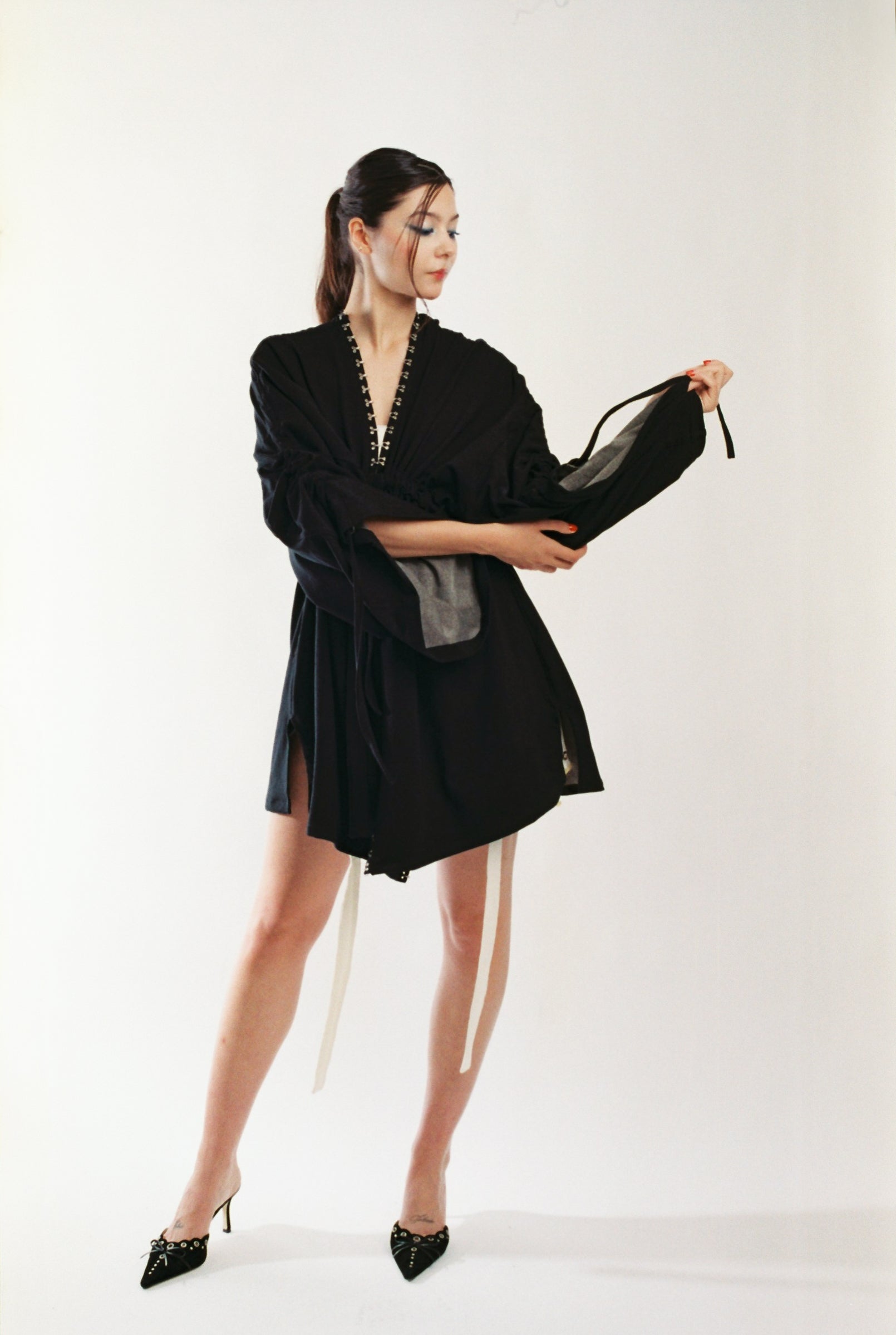 This piece can be worn as a pant, a jumpsuit and a kimono!