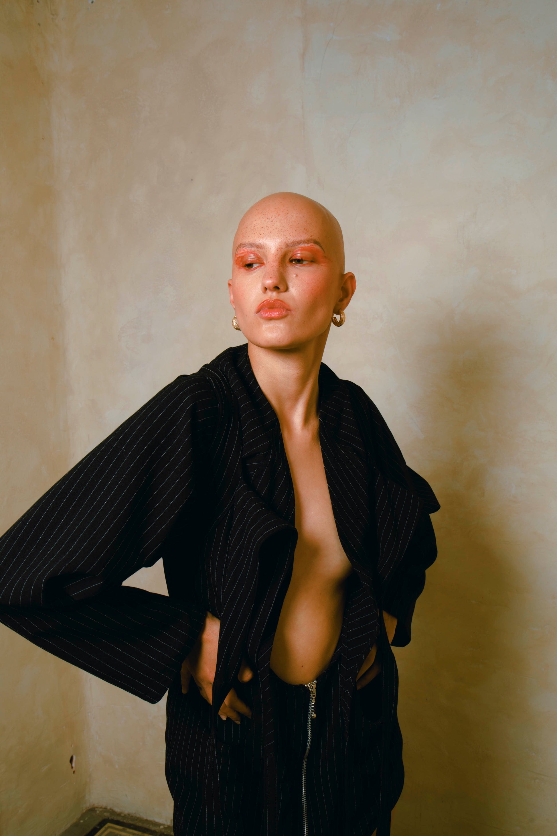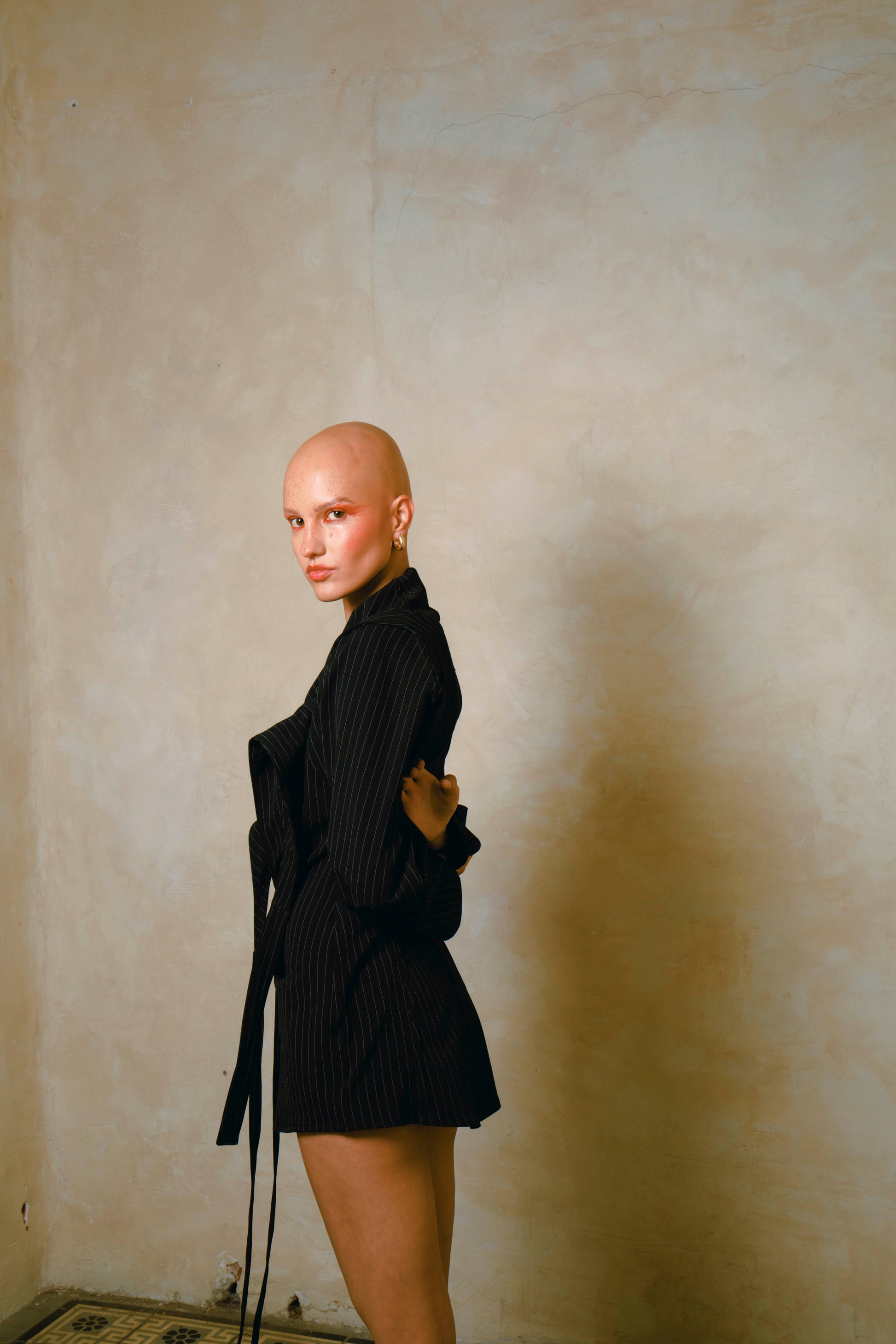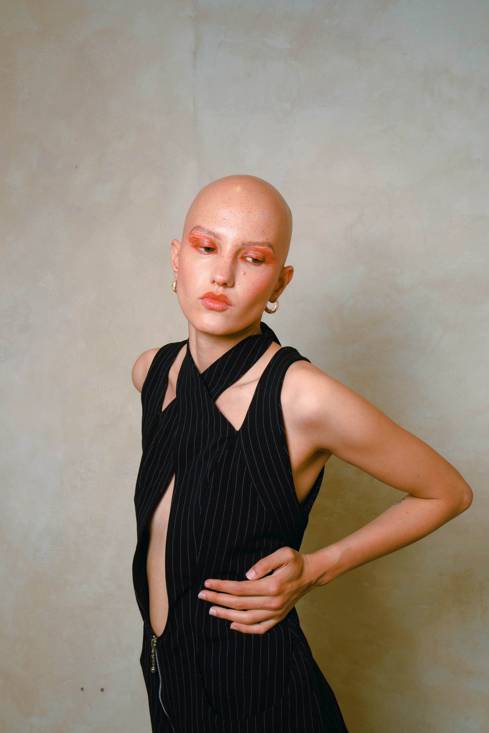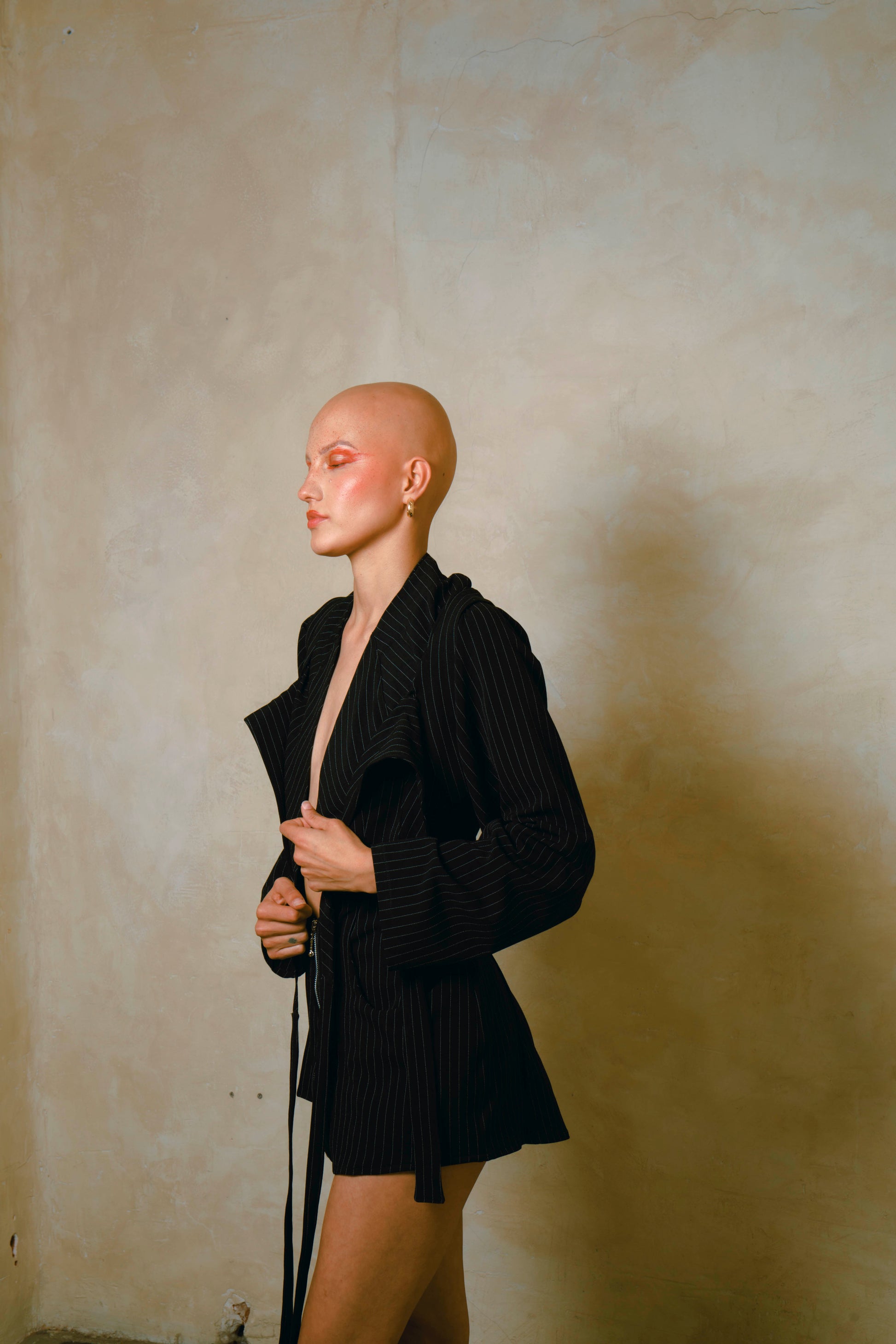 The Modular Blazer/Dress features an adjustable neckline that can be arranged in a criss-cross design, draping elegantly over the chest and secured at the back of the neck.
