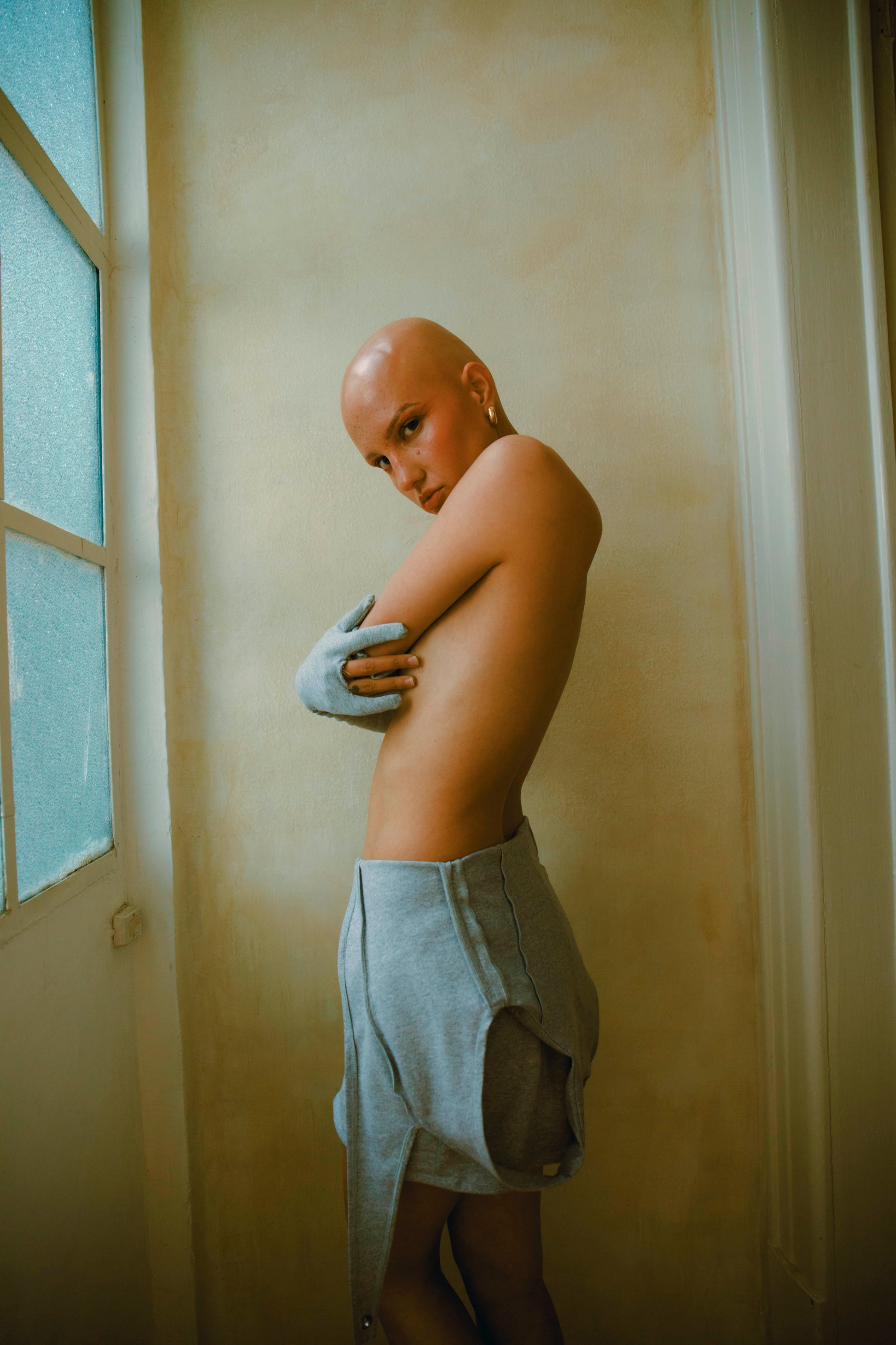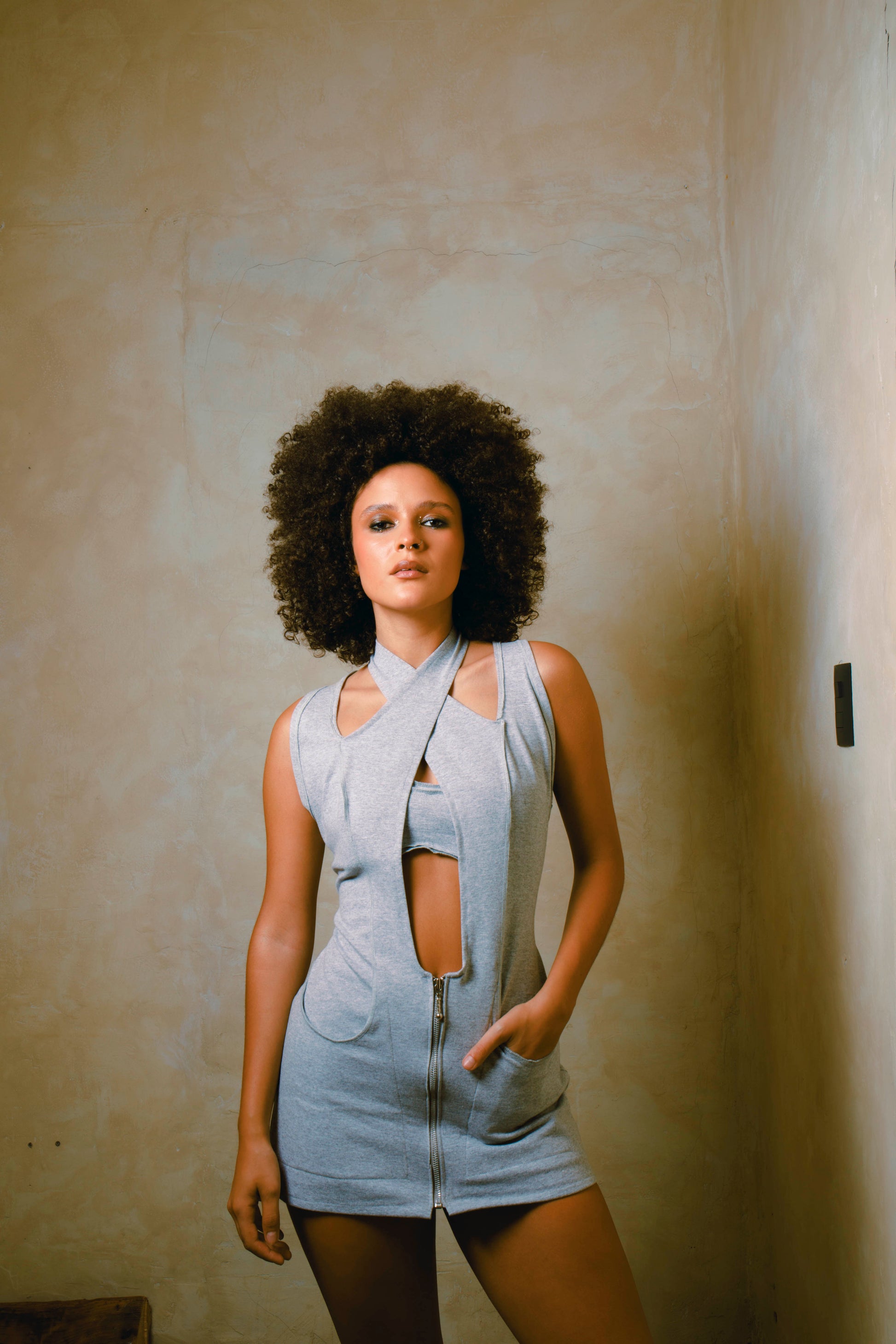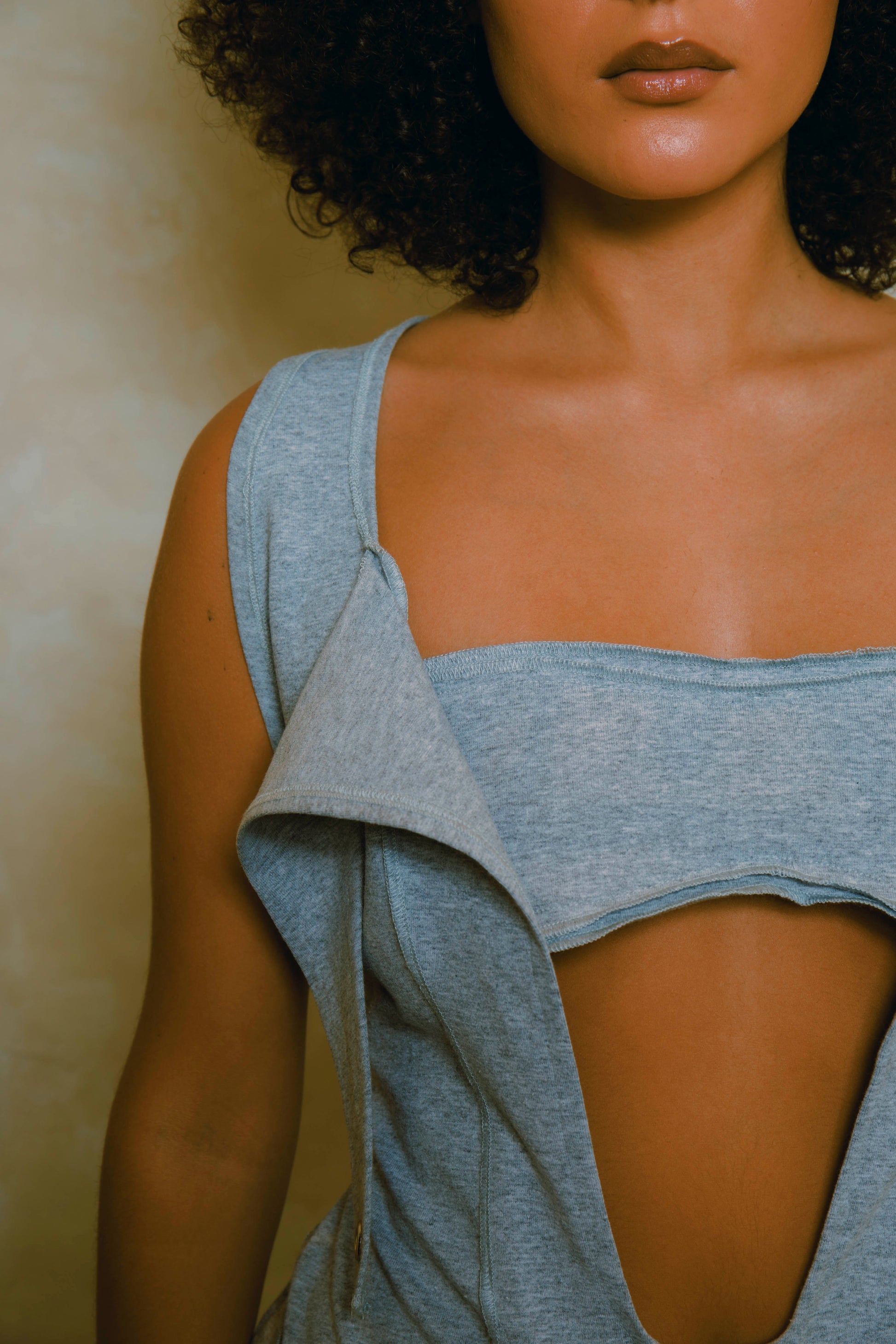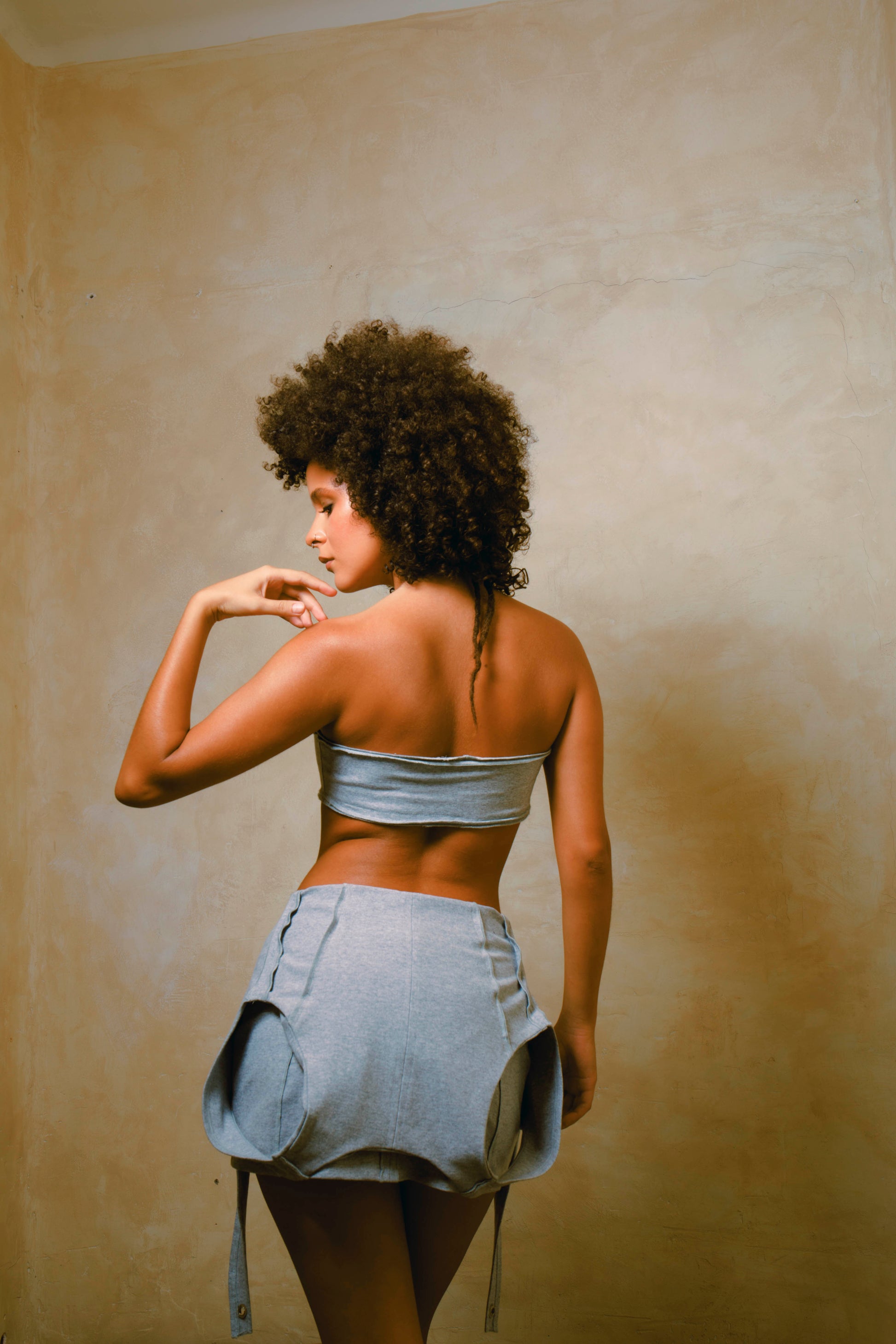 Additionally, the dress can be undone at the neck and the arms can be removed from the armhole, effortlessly transforming it into a skirt. The fitted waistline of the dressform allows it to fold smoothly along this axis.