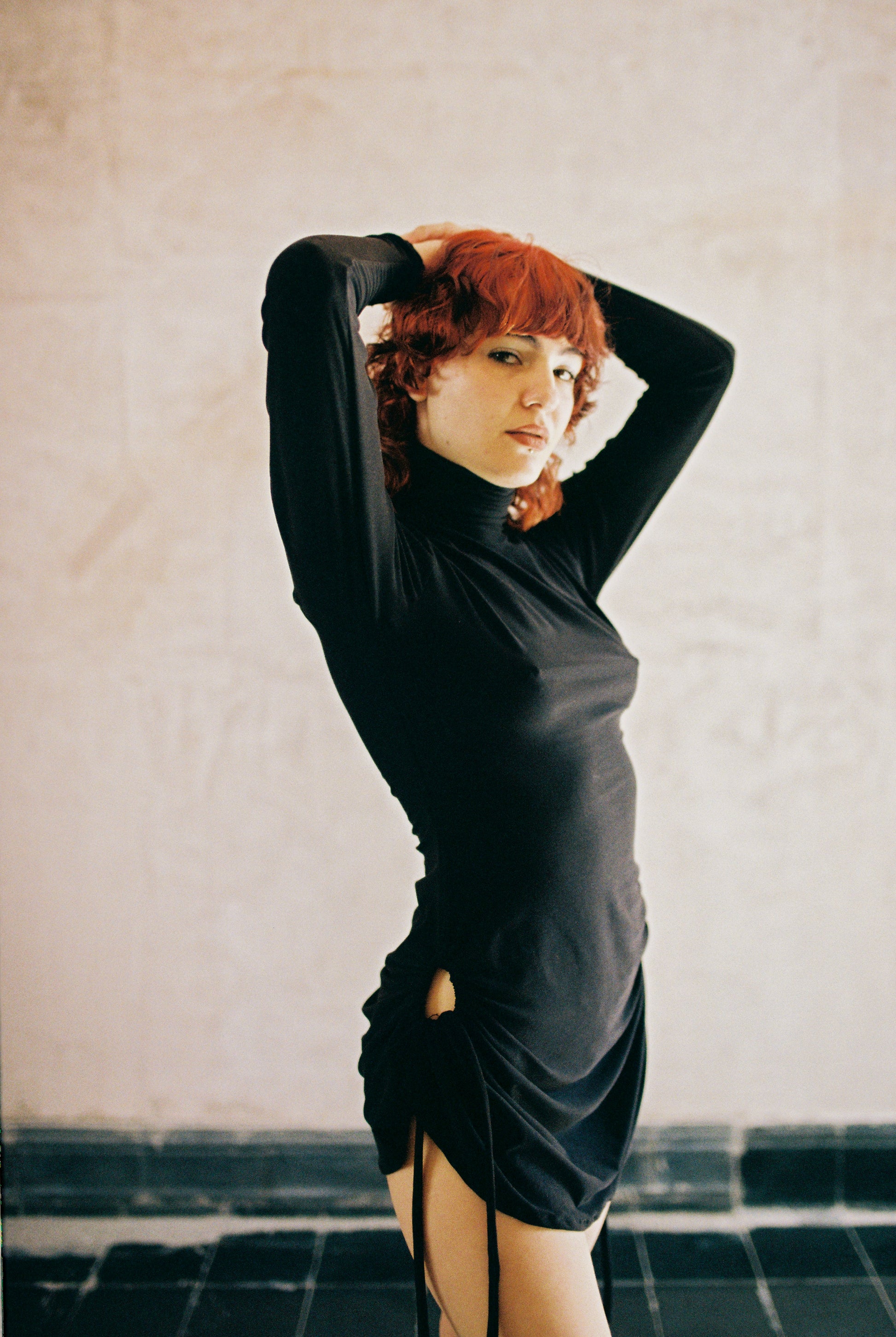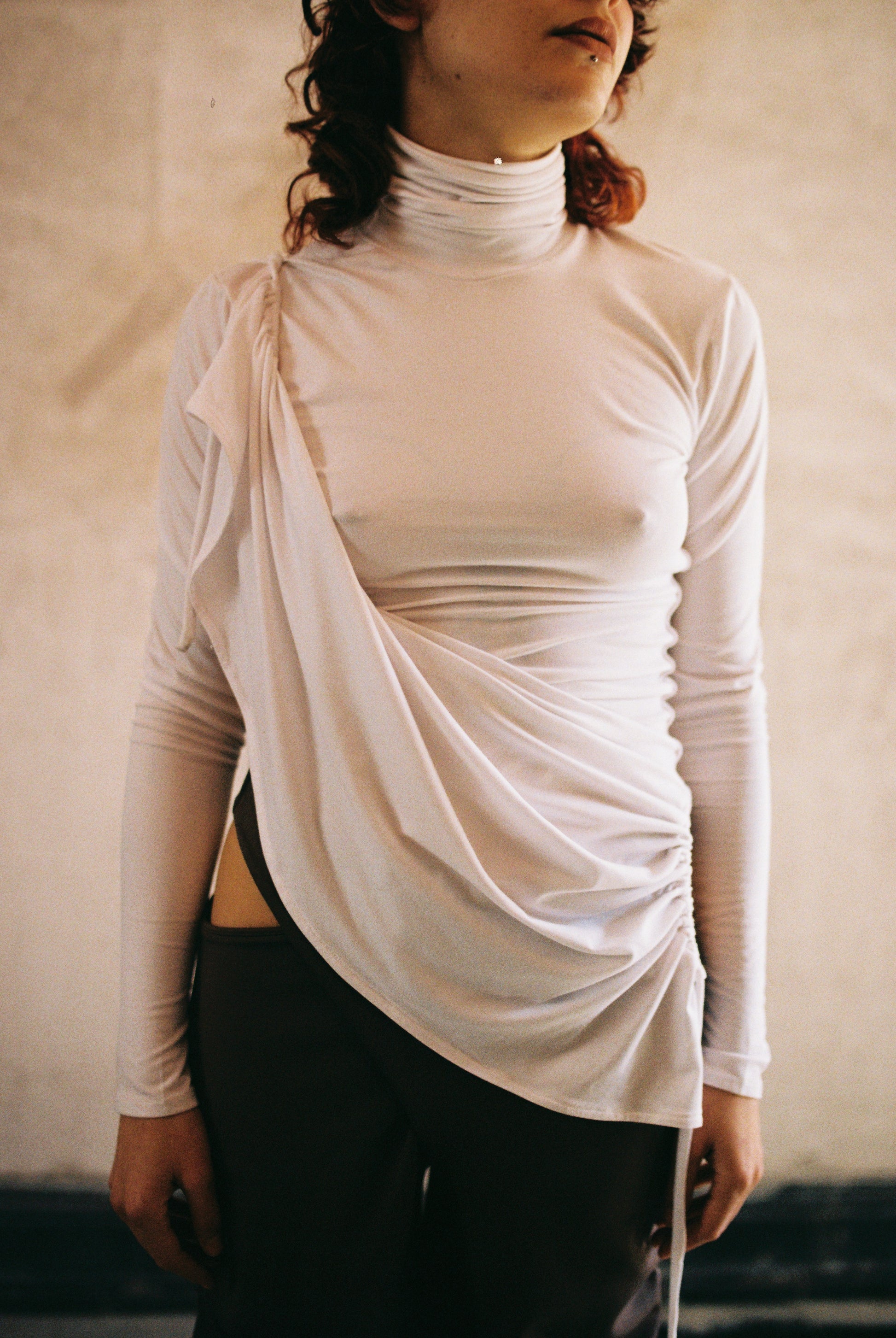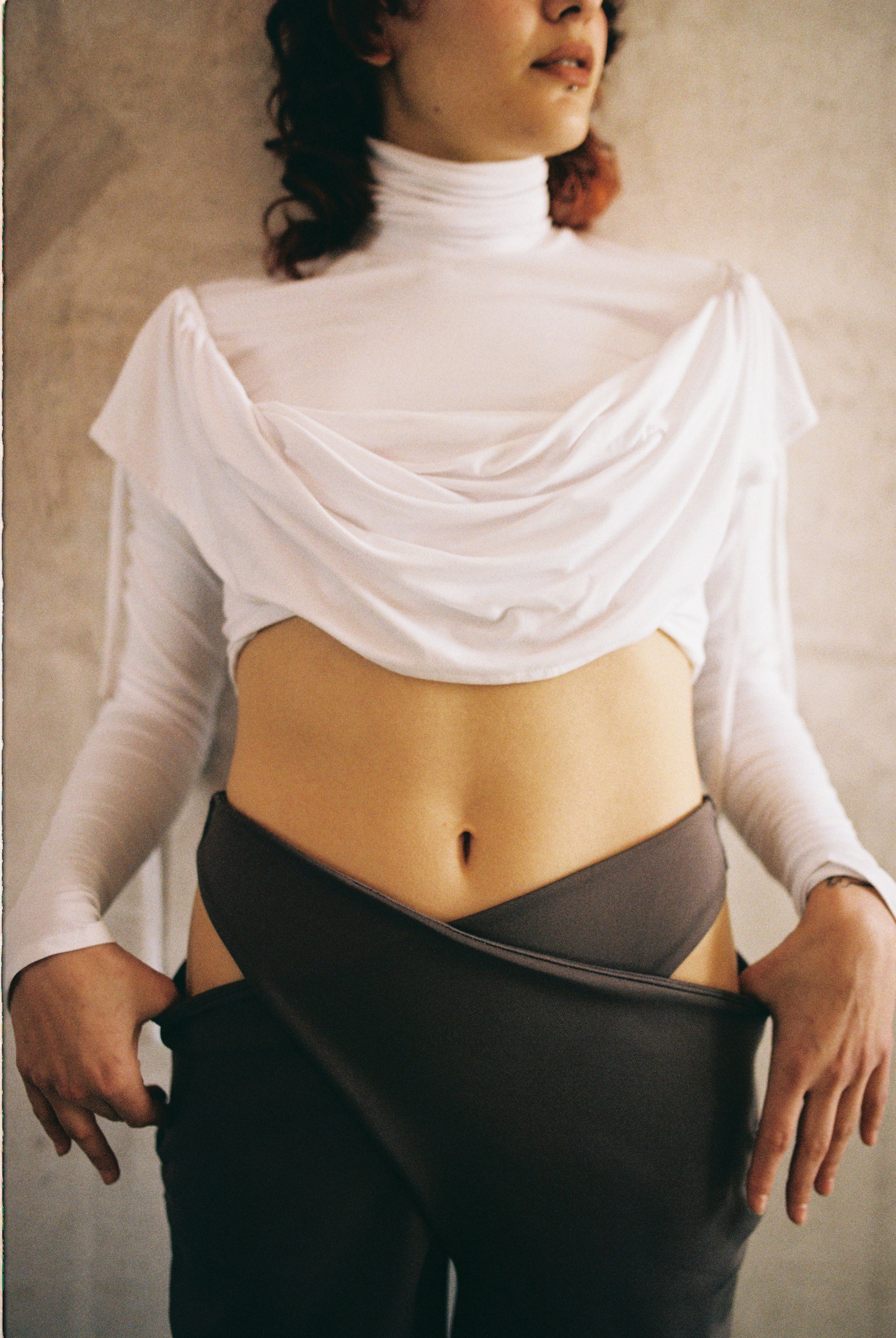 Prenda multiuso que puede utilizarse como vestido y como croptop drapeado. Sus aberturas en la parte inferior del vestido, tienen un canal que puede ajustarse, abrirse y cerrarse, de esta manera puedes acomodarlas como sisa, metiendo en ellas los brazos. El vuelo del vestido genera un volumen drapeado en el área del pecho. Fabricado en tela algodón/spandex muy fina y suave. Hecho en México de manera ética.