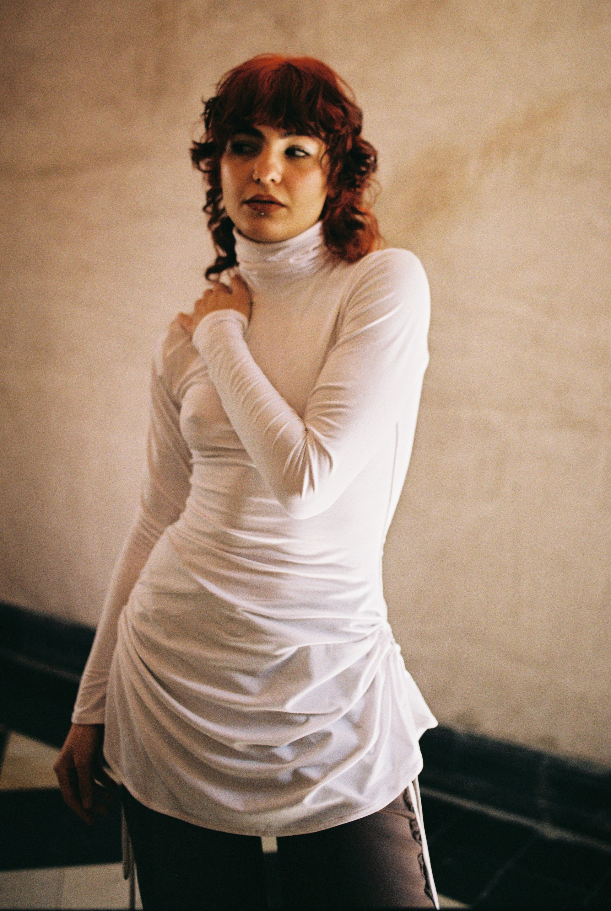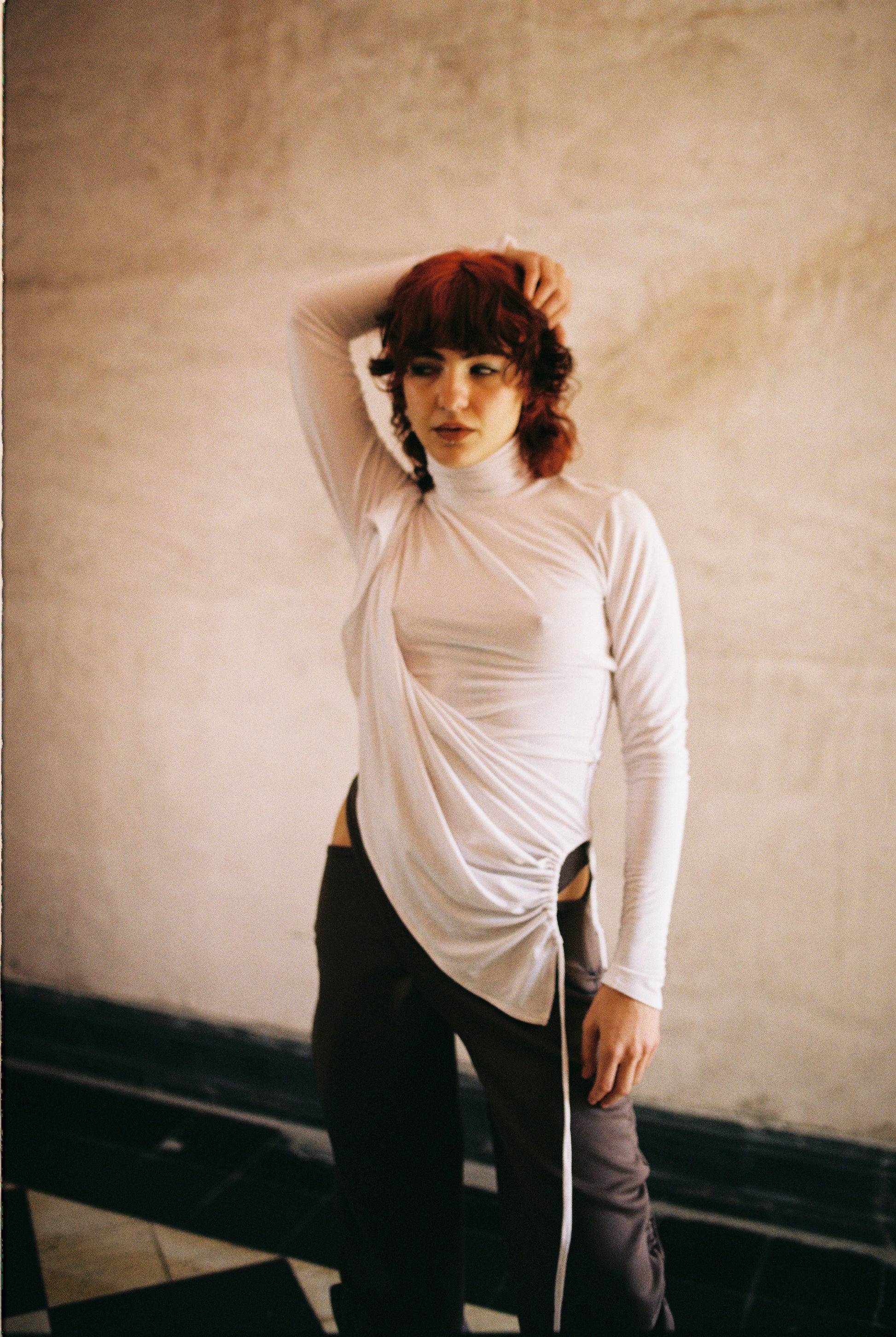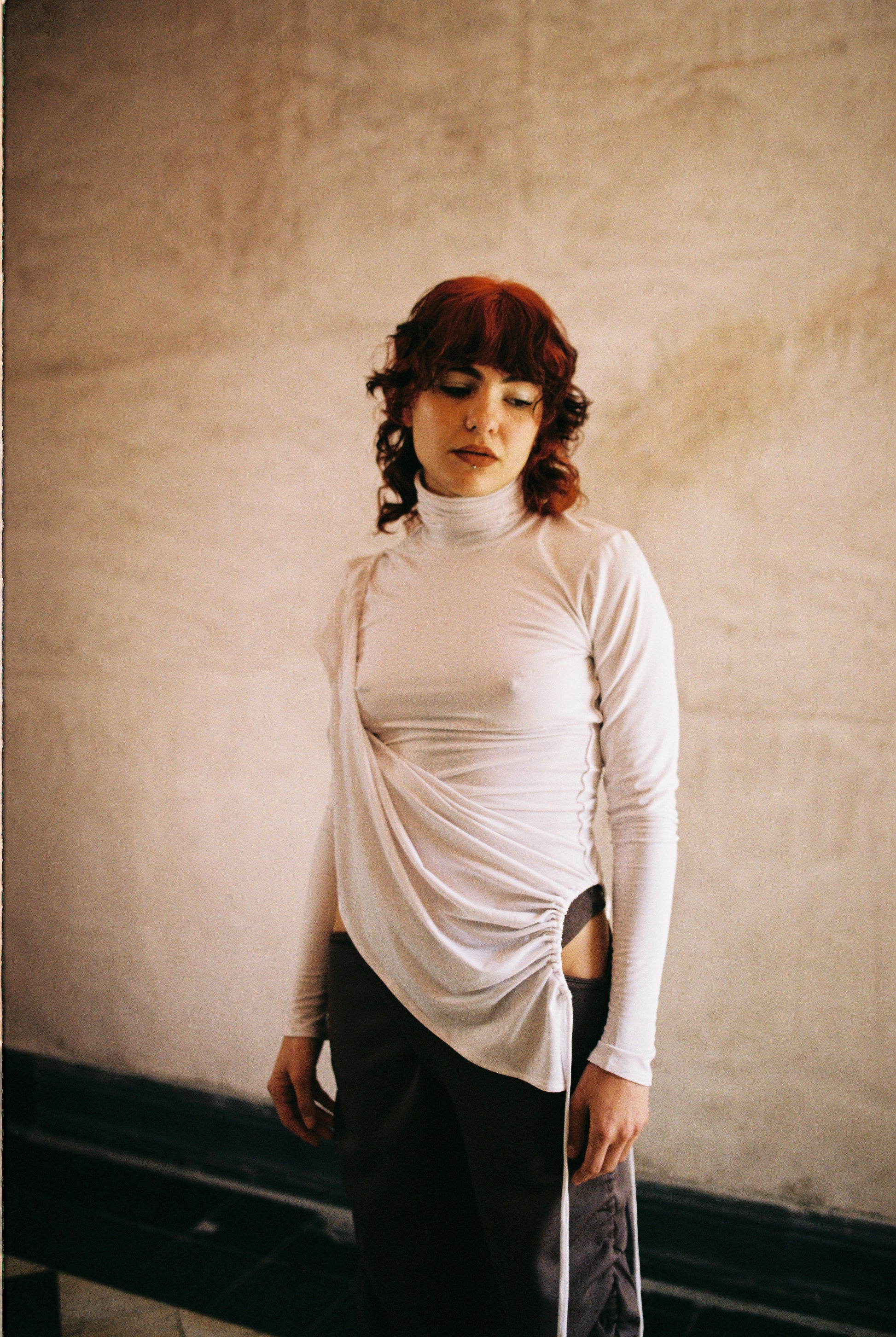 Prenda multiuso que puede utilizarse como vestido y como croptop drapeado. Sus aberturas en la parte inferior del vestido, tienen un canal que puede ajustarse, abrirse y cerrarse, de esta manera puedes acomodarlas como sisa, metiendo en ellas los brazos. El vuelo del vestido genera un volumen drapeado en el área del pecho. Fabricado en tela algodón/spandex muy fina y suave. Hecho en México de manera ética.
