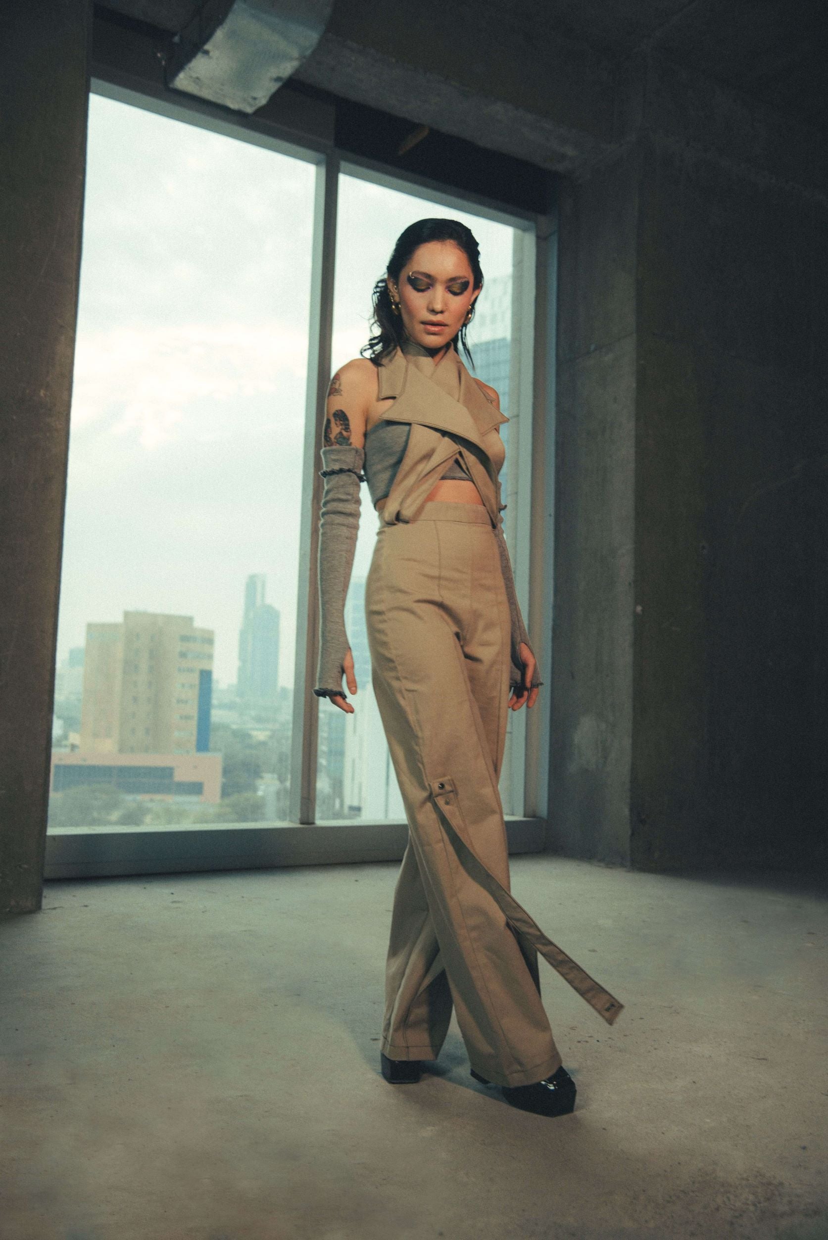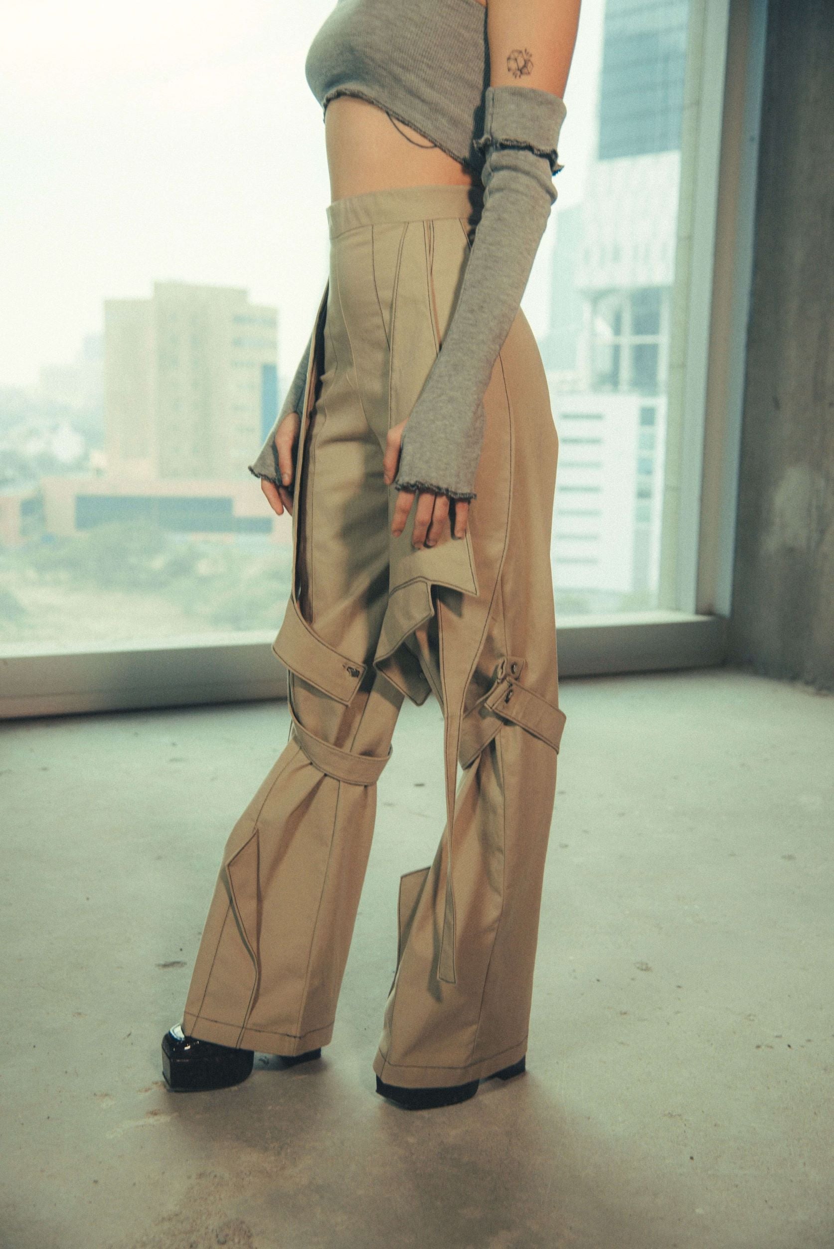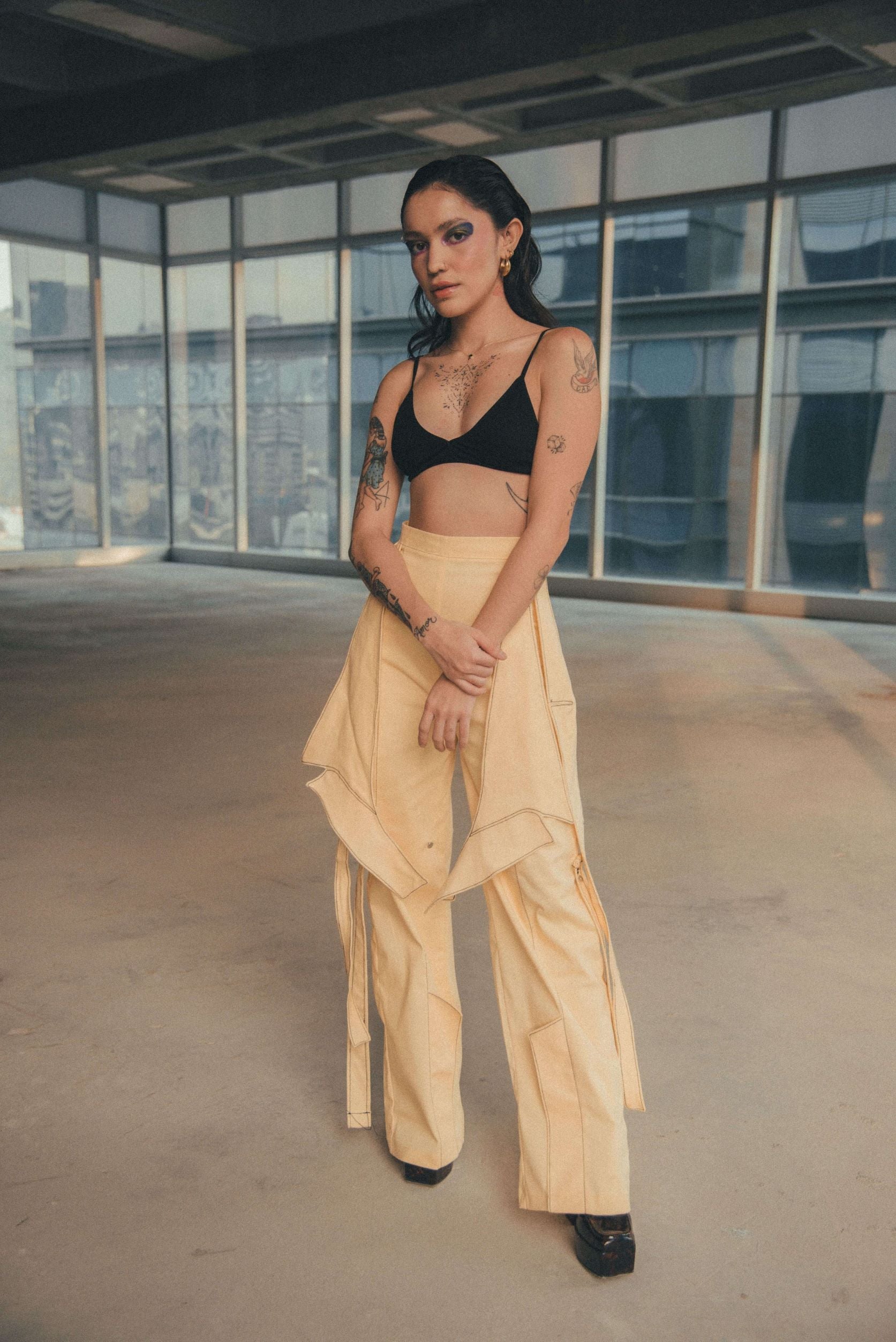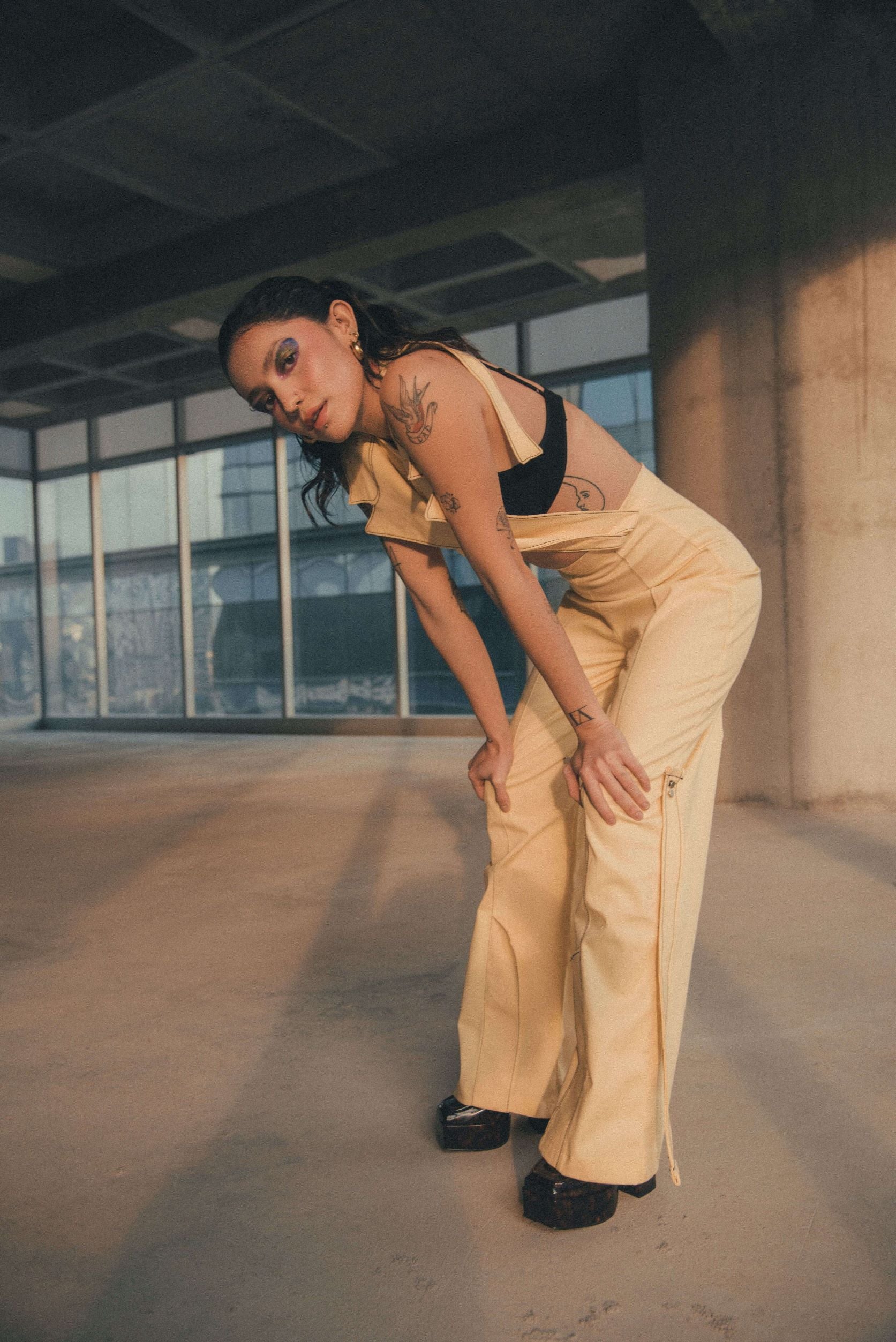 Prenda multiuso que puede utilizarse como pantalón o como enterizo. Las piezas del costado se cruzan y se atan en el cuello, así como las solapas, se cruzan por el pecho y en el cuello se abotonan unas con otras. Logrando así la transformación del look. Las tiras inferiores de los costados se abrochan para ajustar en el ancho del pantalón por de bajo de la rodilla, también pueden soltarse y retirarse para lograr el look que desees. Fabricado en tela de algodón con spandex. Hecho en México de manera ética y sustentable. Esta prenda toma 12/20 dias en completarse