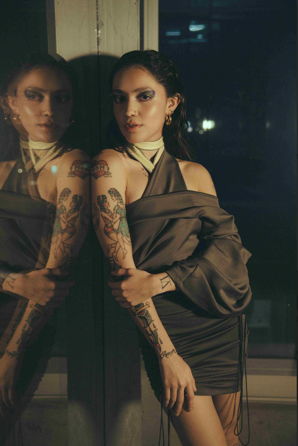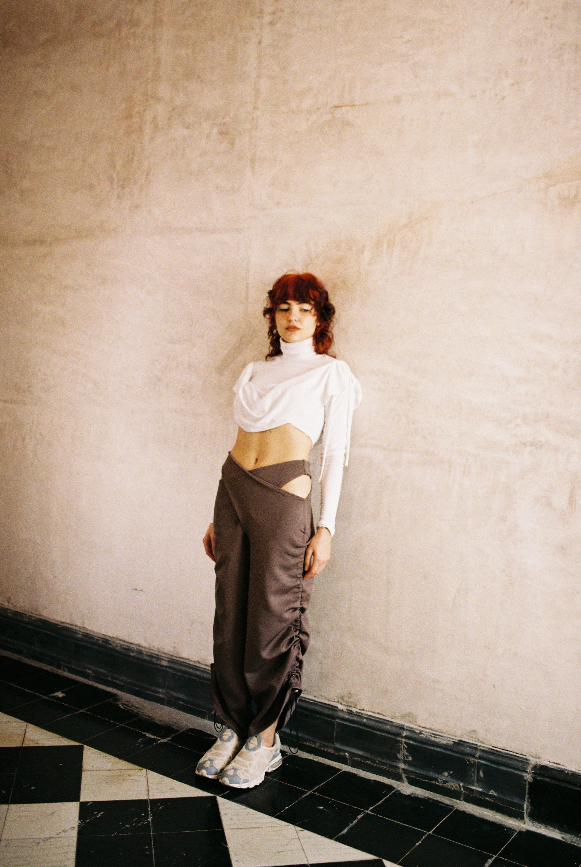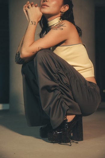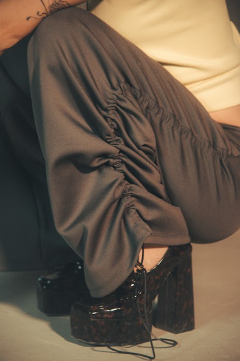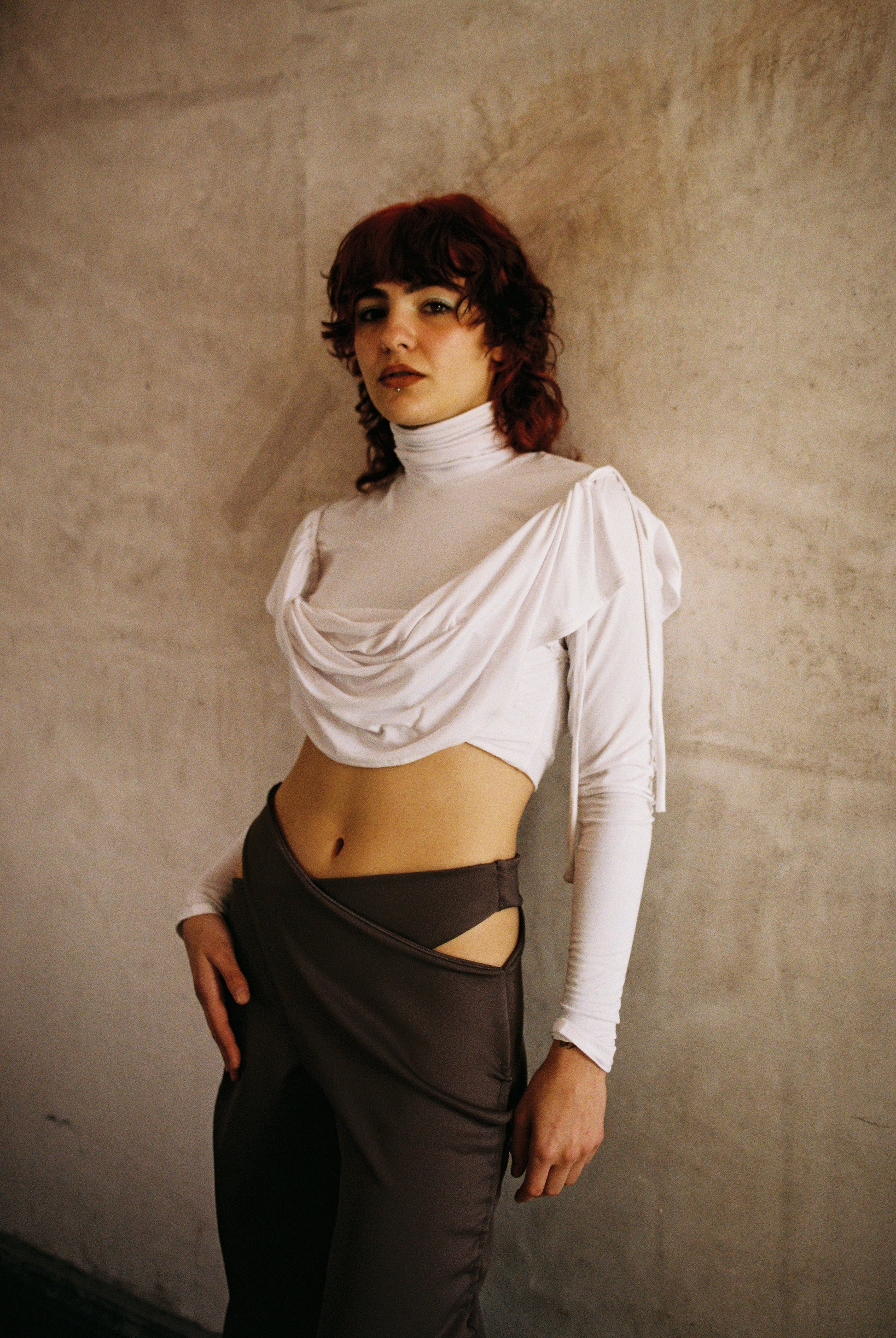 This versatile garment can function as both pants and a dress. Vertical ruching on the sides allows for length adjustment and a gathered look. When worn as a dress, one leg becomes the dress while the other functions as the sleeve. The length can also be adjusted to create a knee-length dress. The sleeve can be fully gathered for a glamorous effect. Made with stretchy and form-fitting Lycra fabric. Ethically made in Mexico.