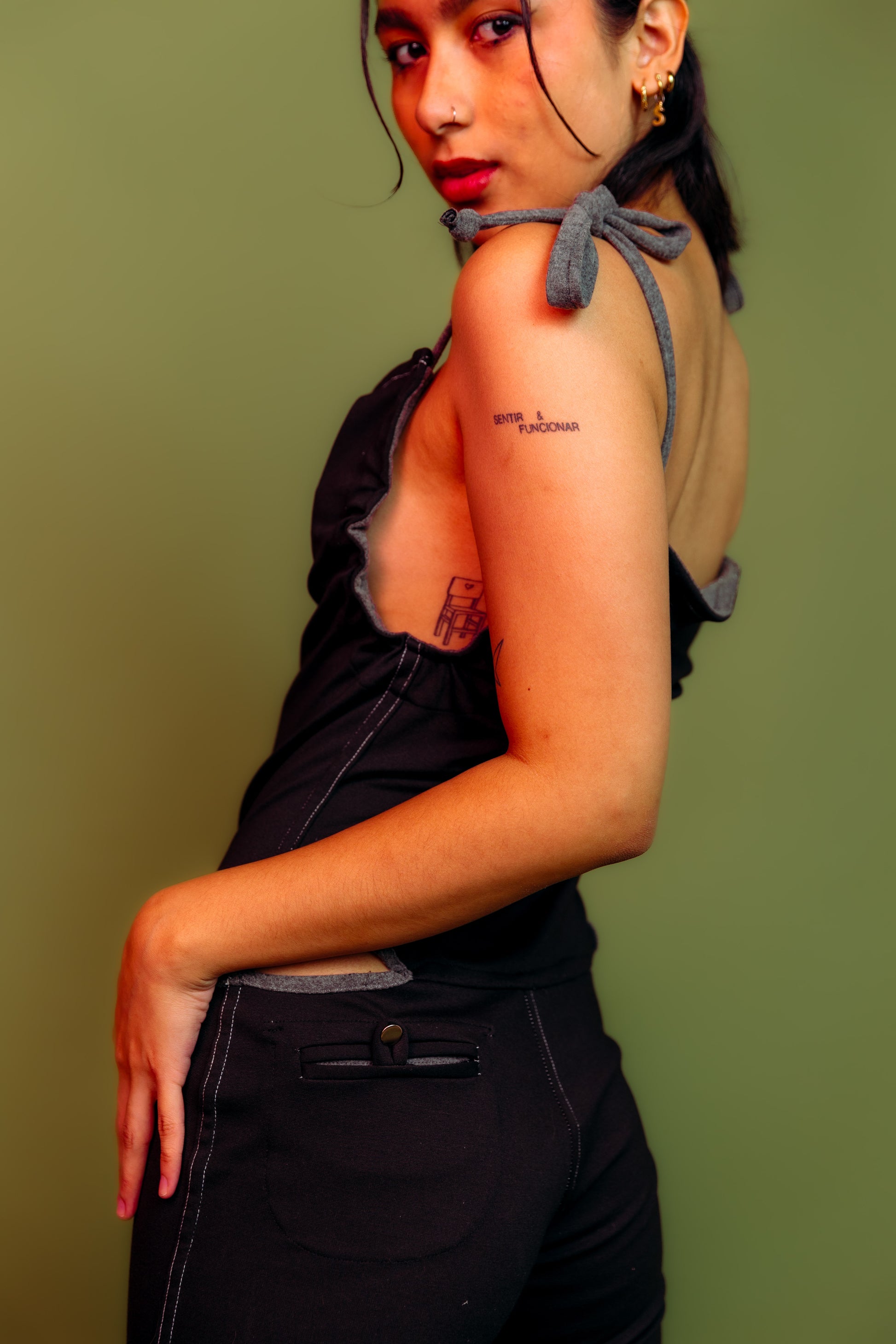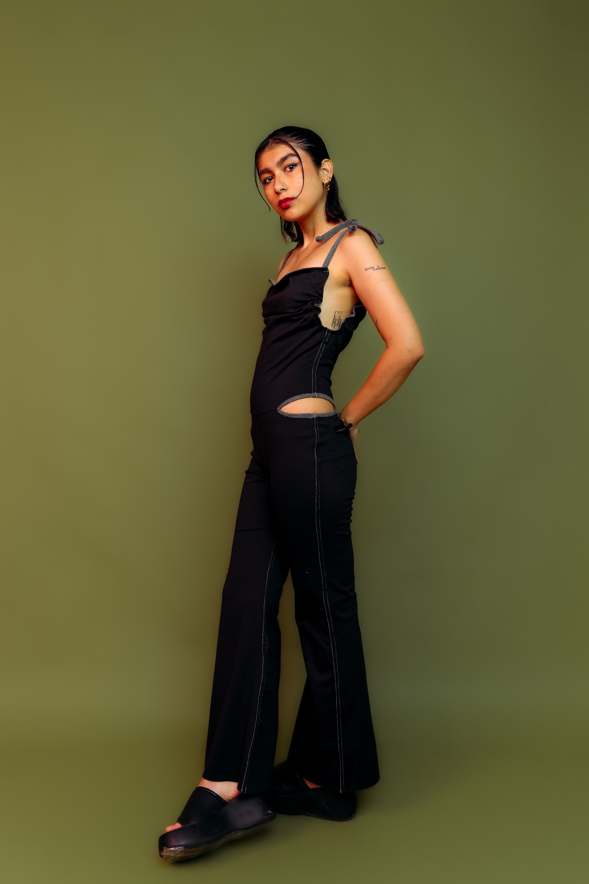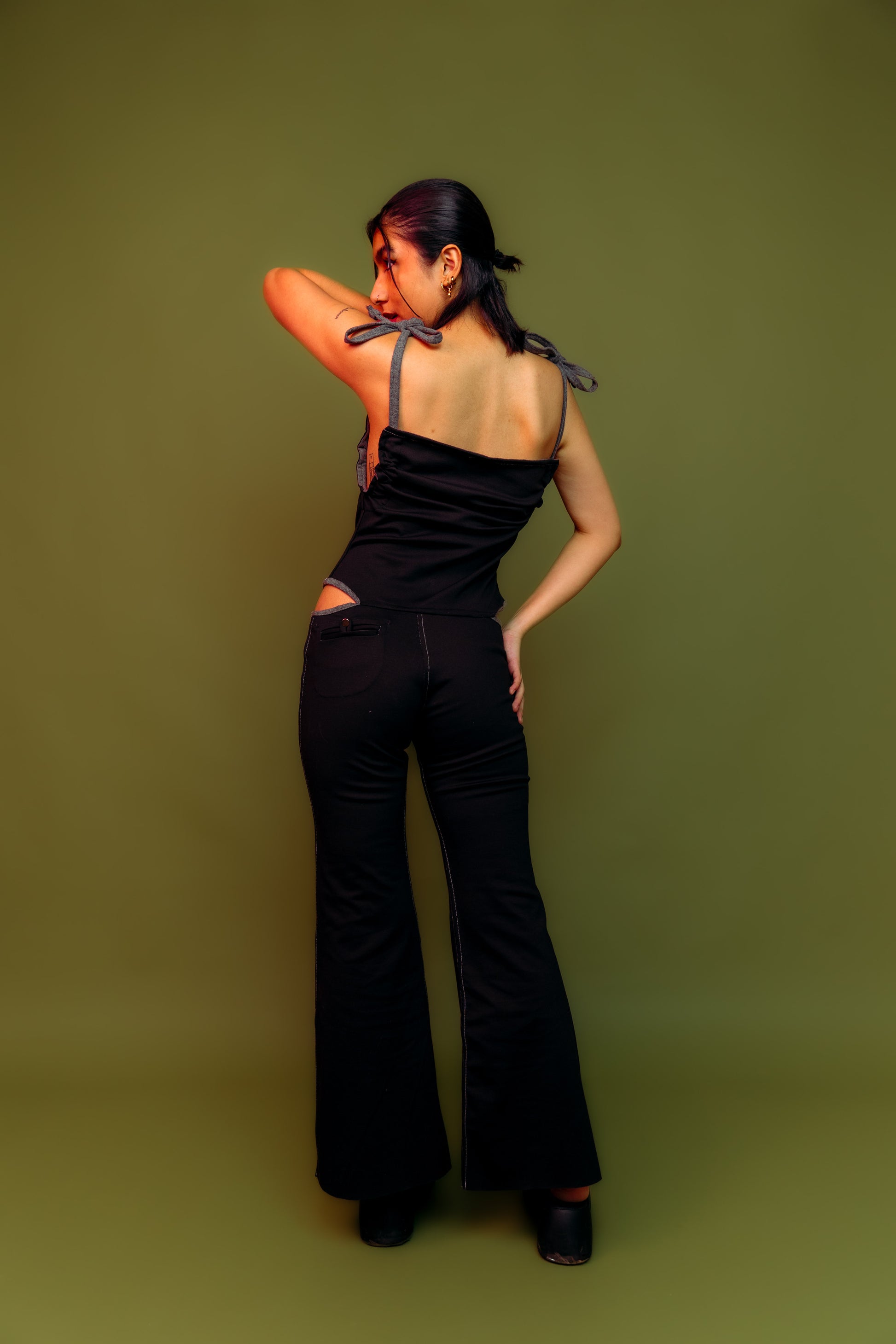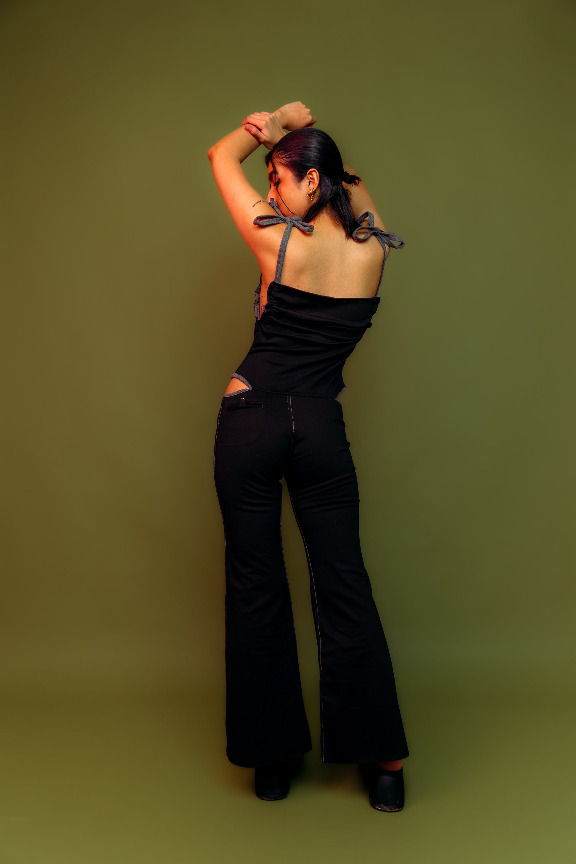 Reversible jumpsuit/pant made of a stretcy high quality fabric.