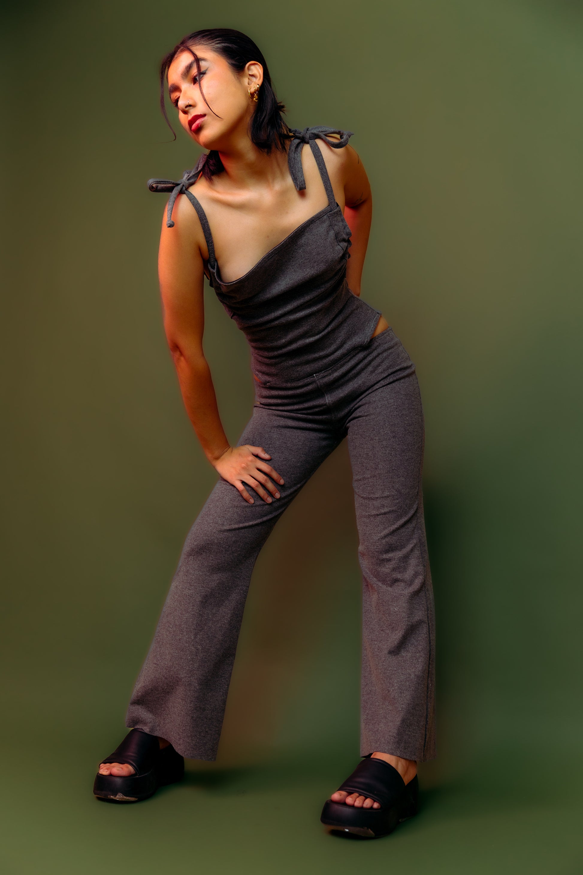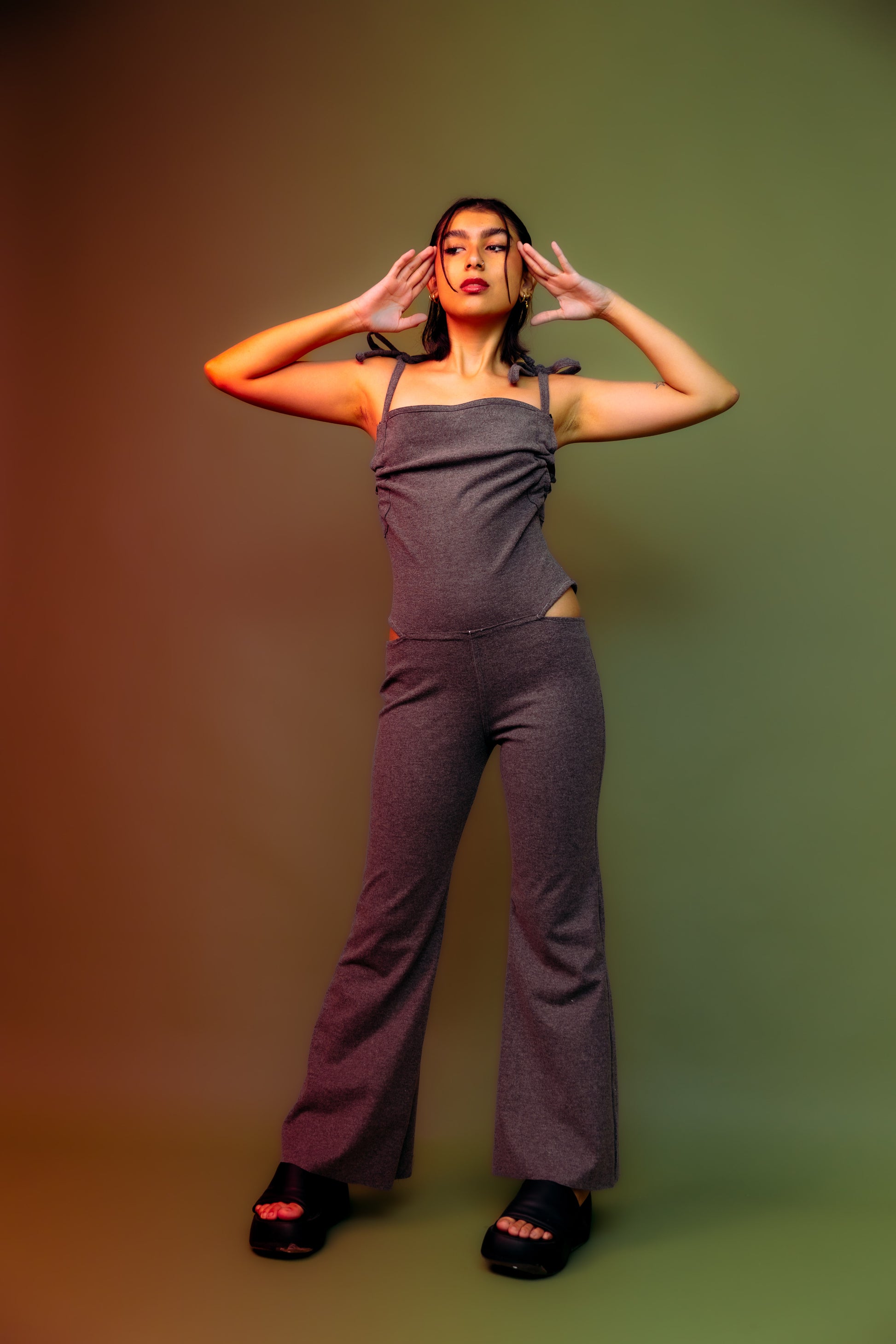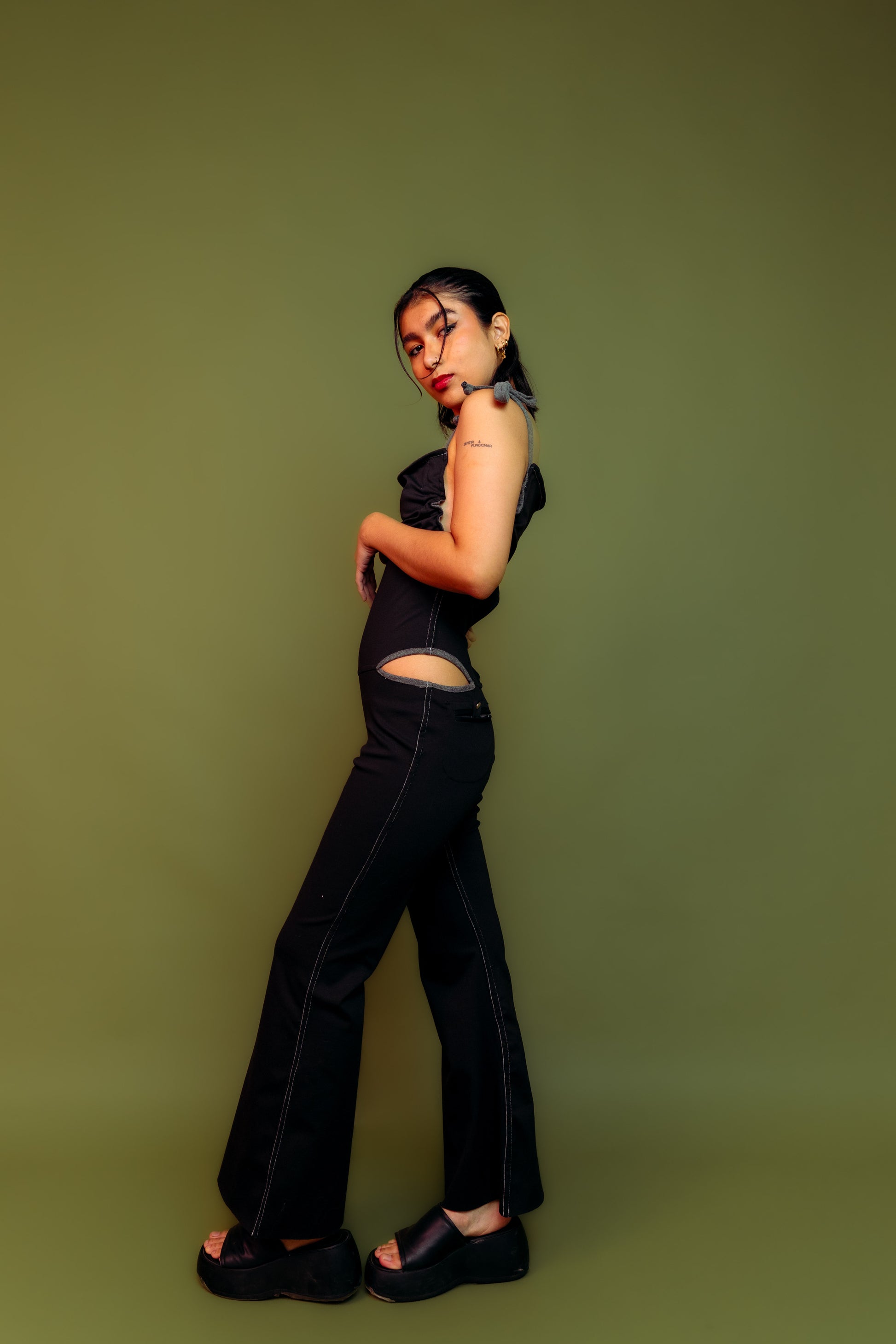 Reversible jumpsuit/pant made of a stretcy high quality fabric.