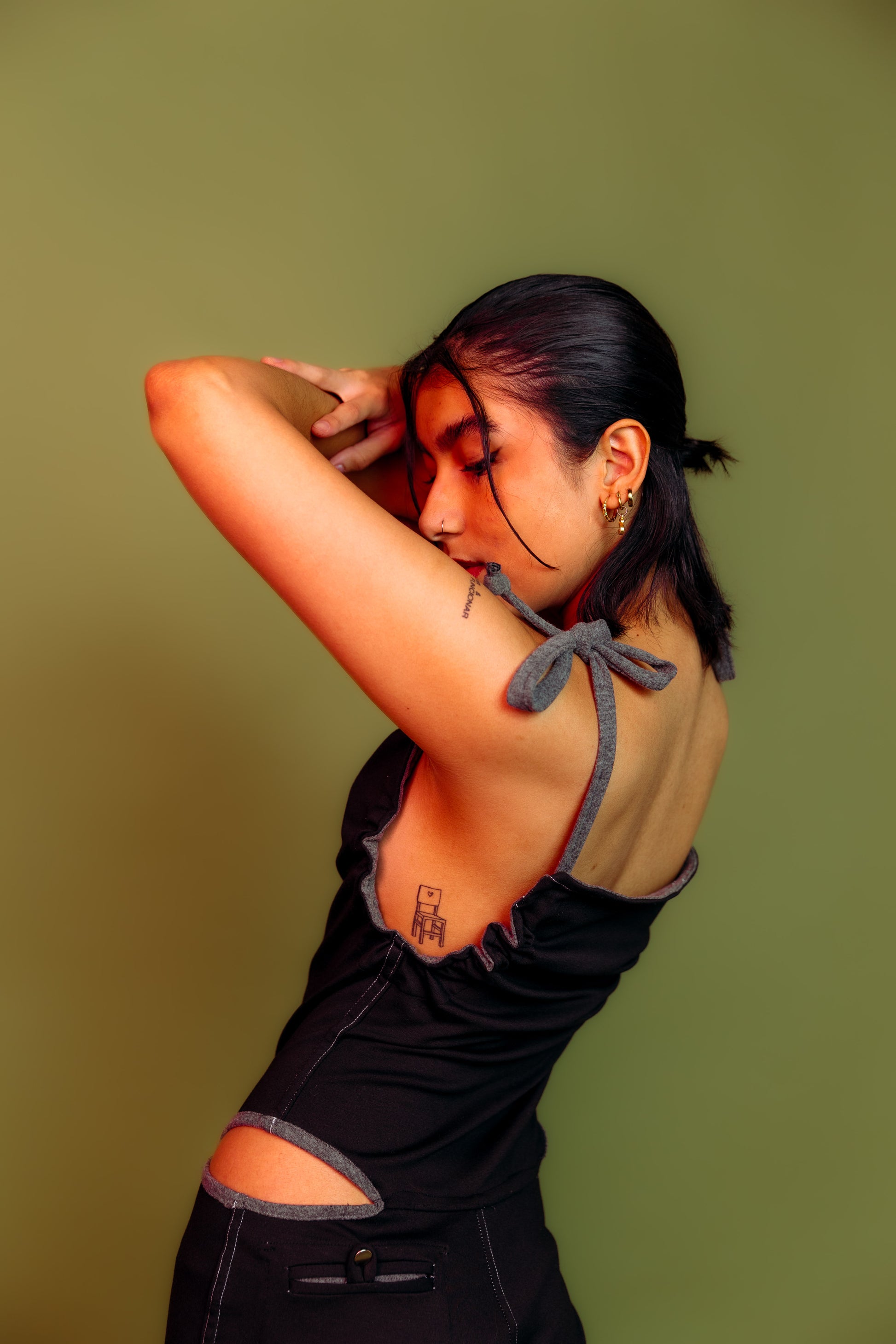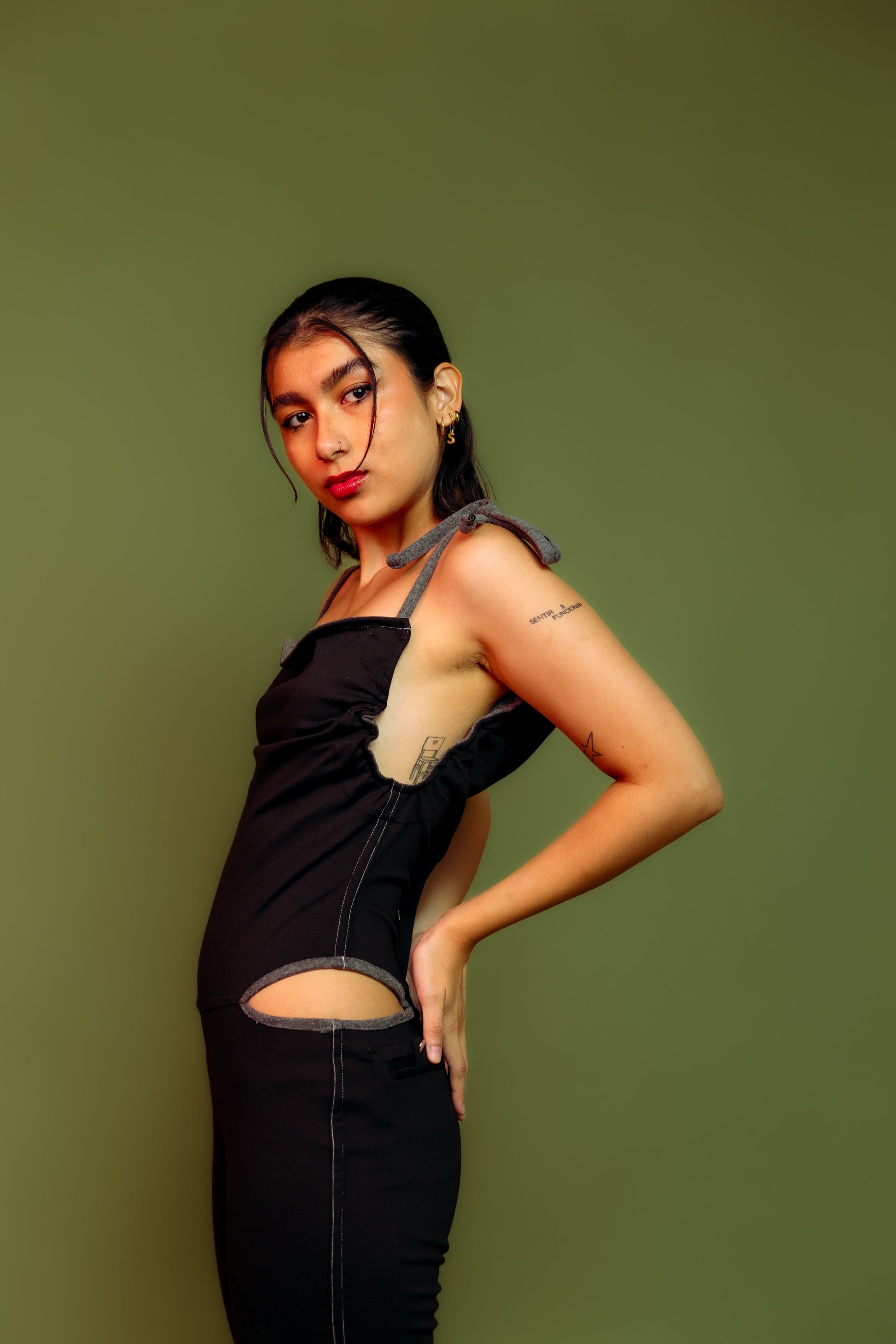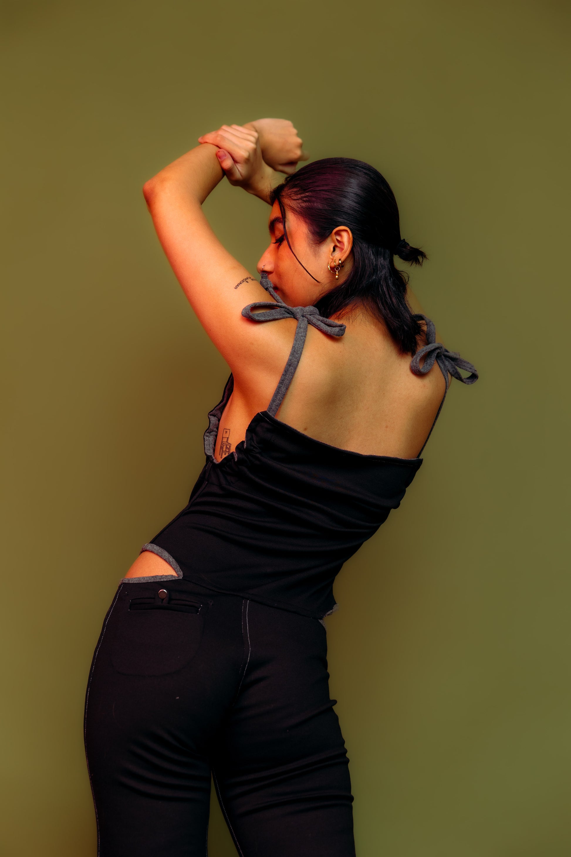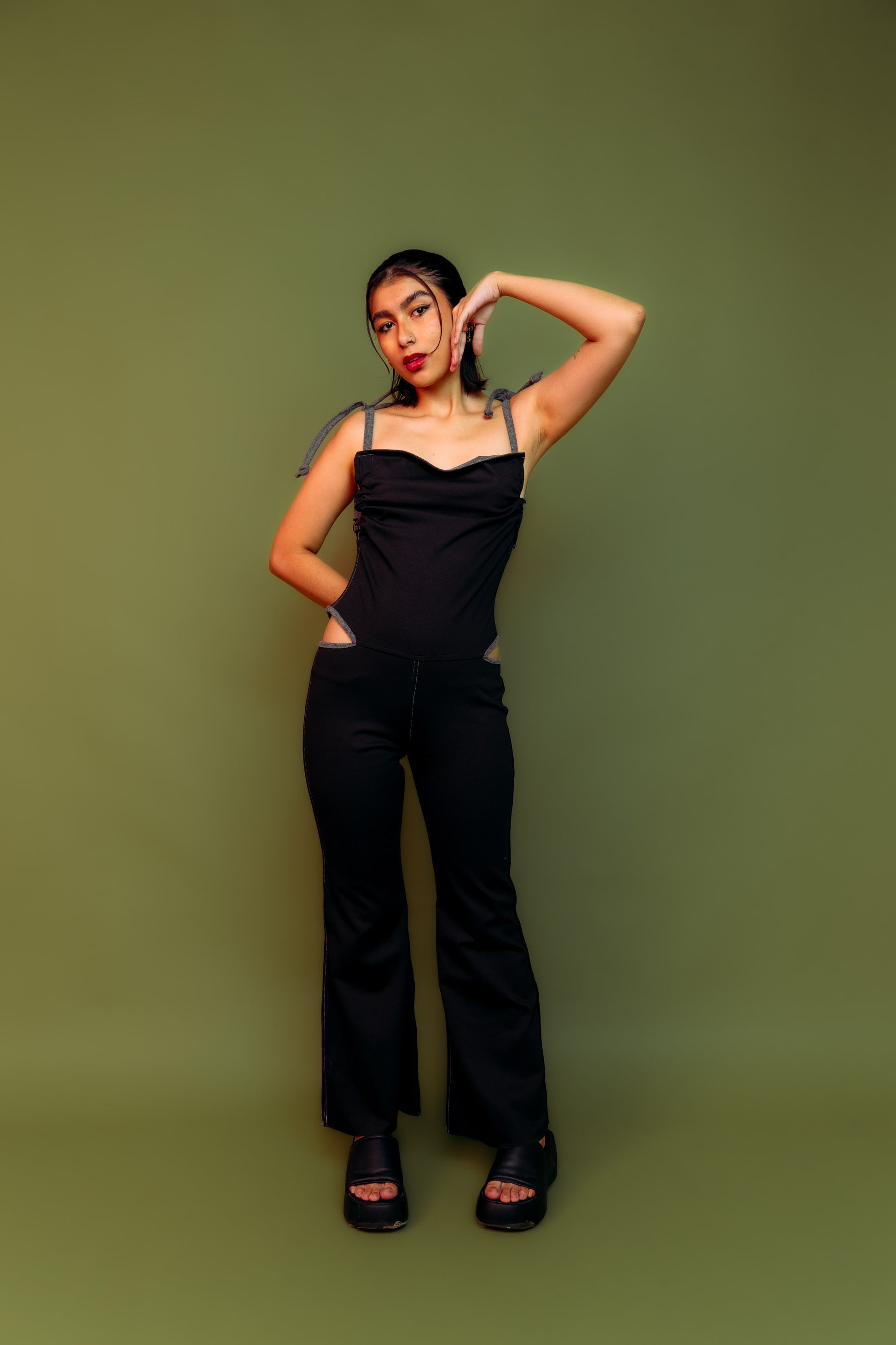Reversible jumpsuit/pant made of a stretcy high quality fabric.