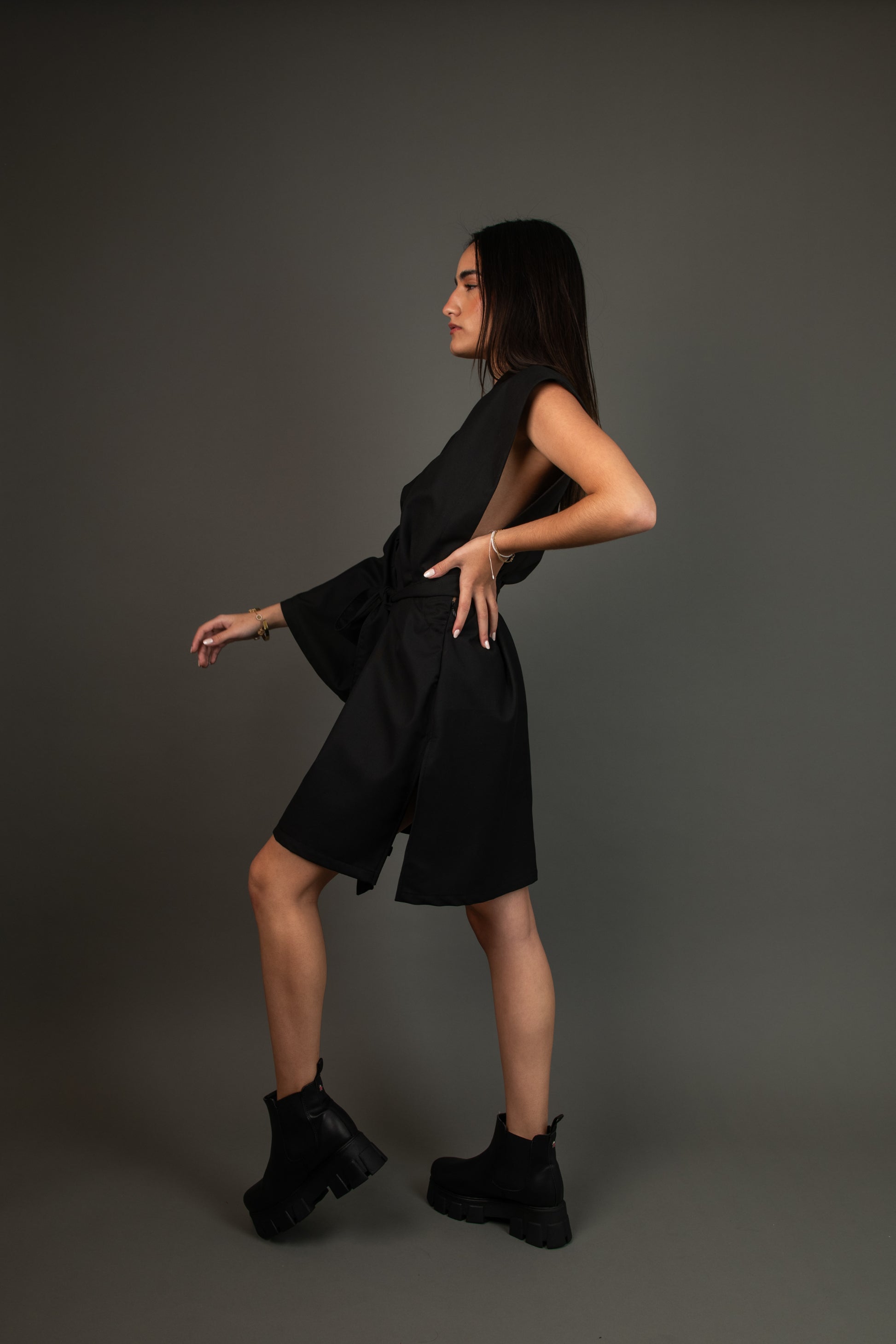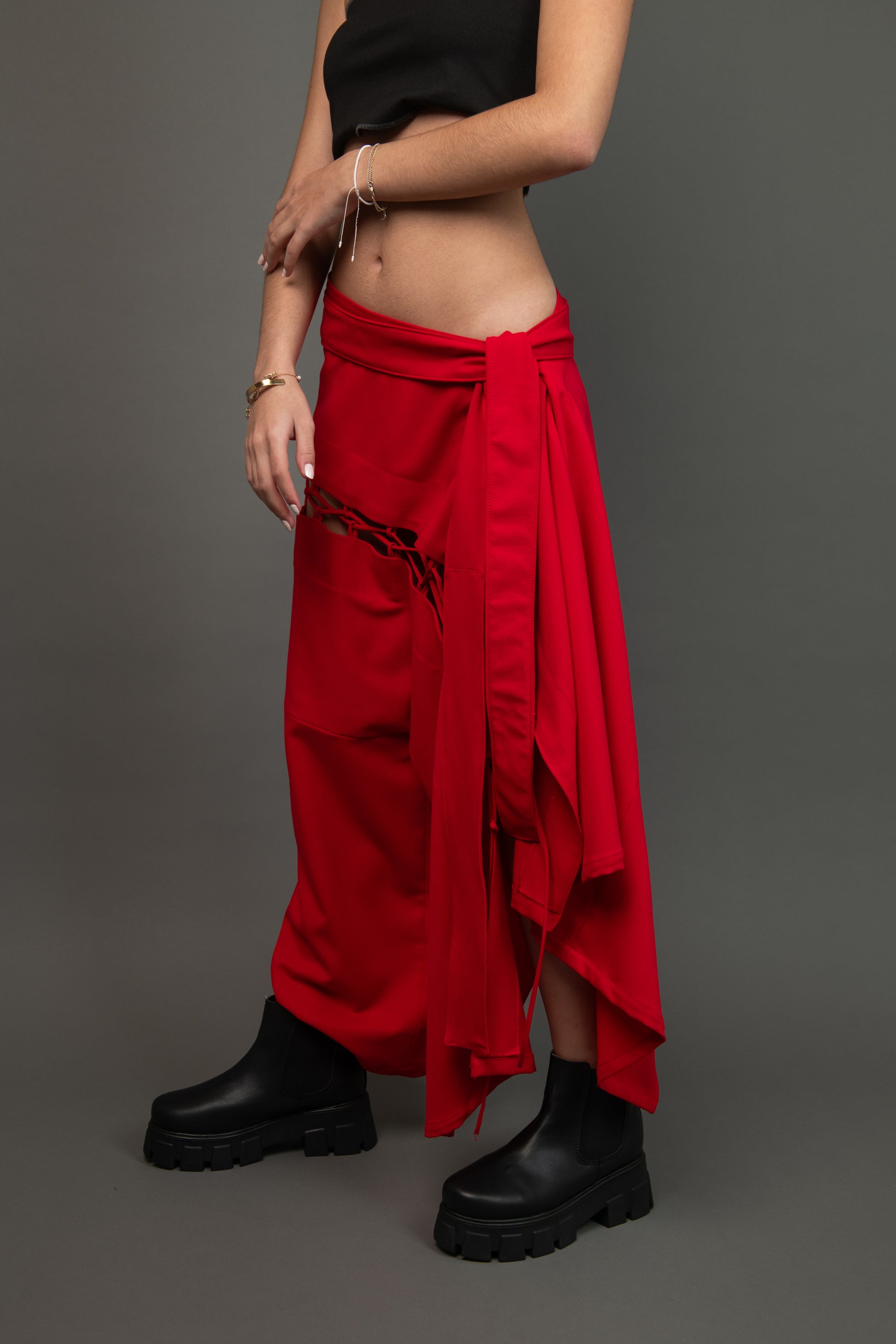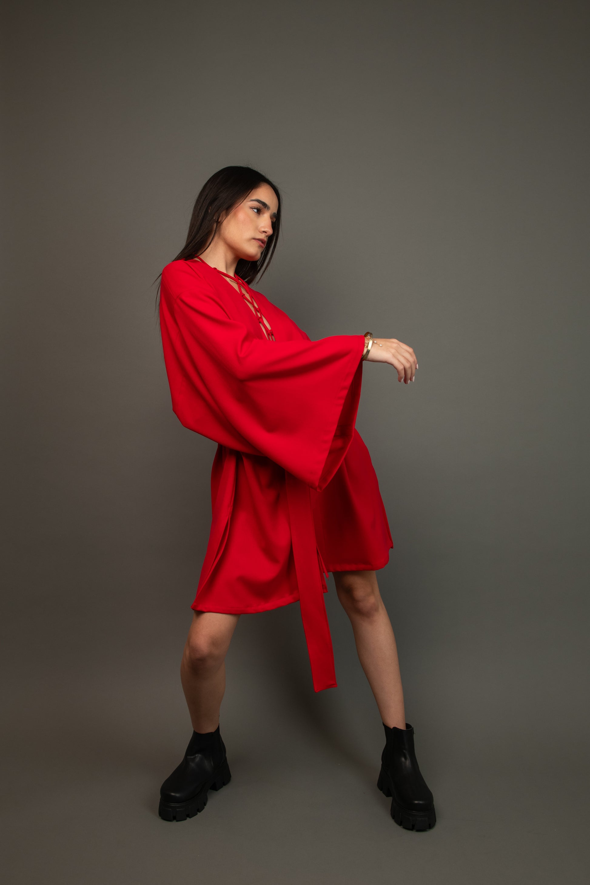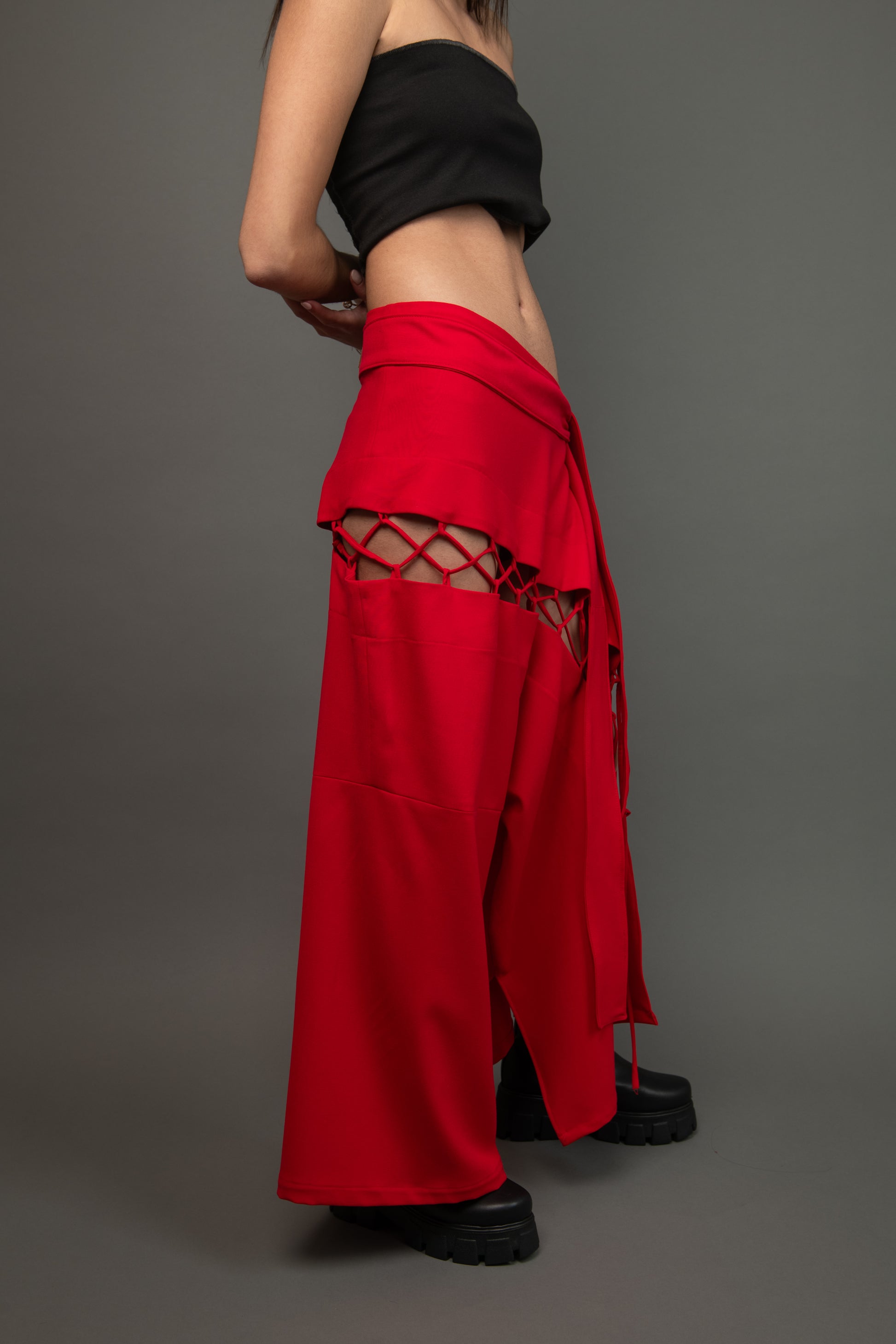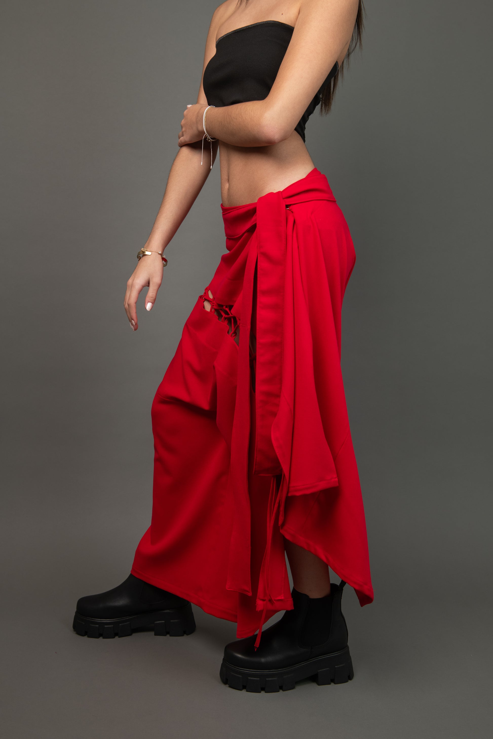 Multifunctional garment that can be used as a Kimono and as a pants, it has a closure on the side which allows adjustment at the waist at the time of transformation.